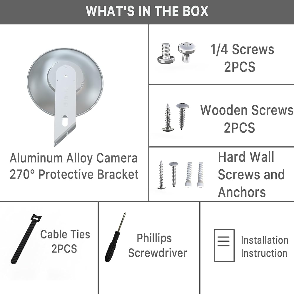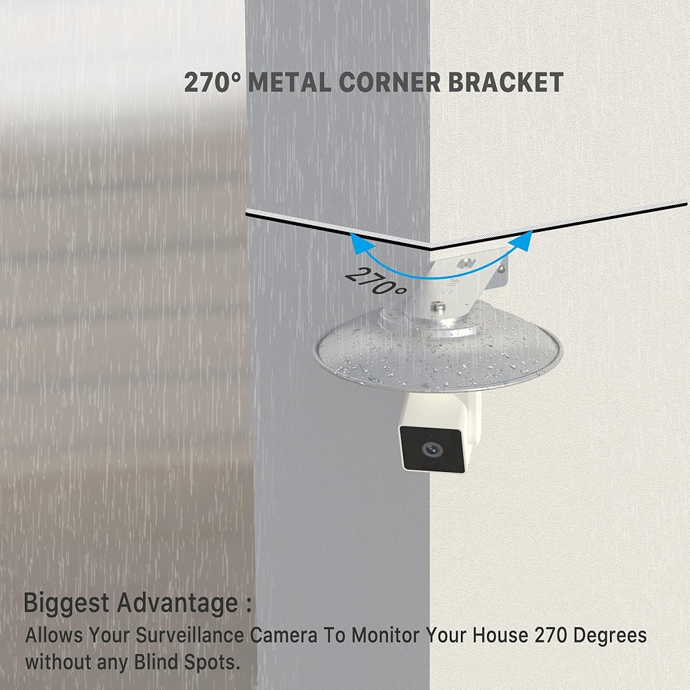 تركيب آمن: يتميز بدعامات ومسامير تثبيت قوية، ويتم تثبيته بقوة على الجدران عند الزوايا أو الحواف من أجل وضع موثوق لكاميرا الأمان الخاصة بك.