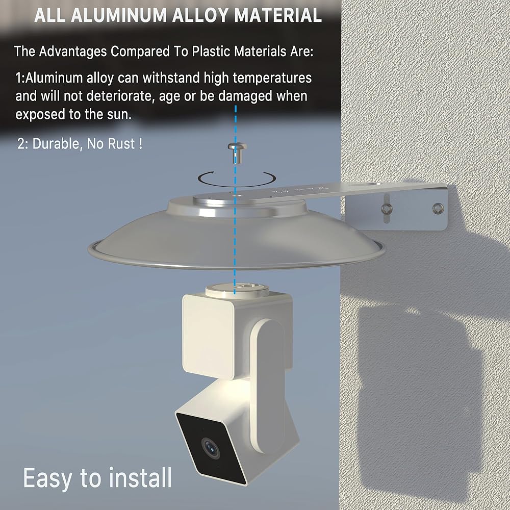 تصميم متين: مصنوع من سبائك الألومنيوم شديدة التحمل مع غطاء معدني مقاوم للطقس، يحمي حامل الزاوية هذا W yze Cam Pan V3 من المطر والثلج والعناصر الخارجية الأخرى.