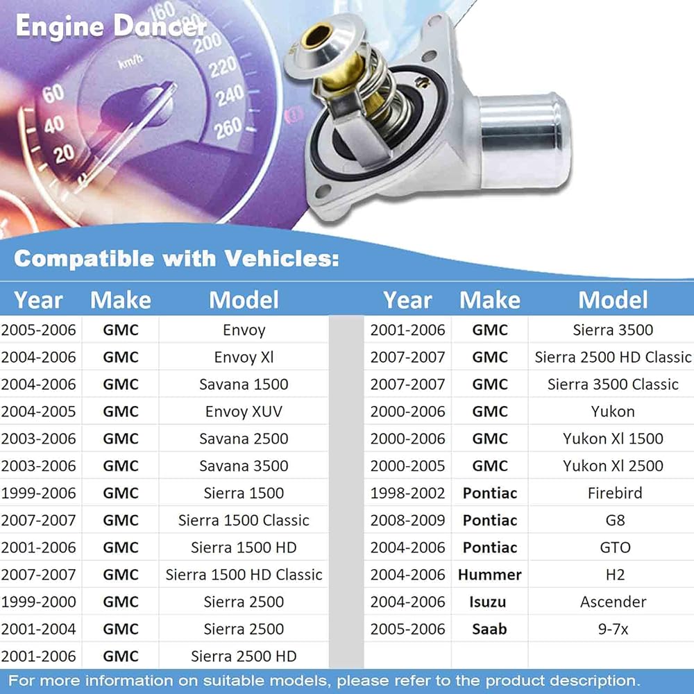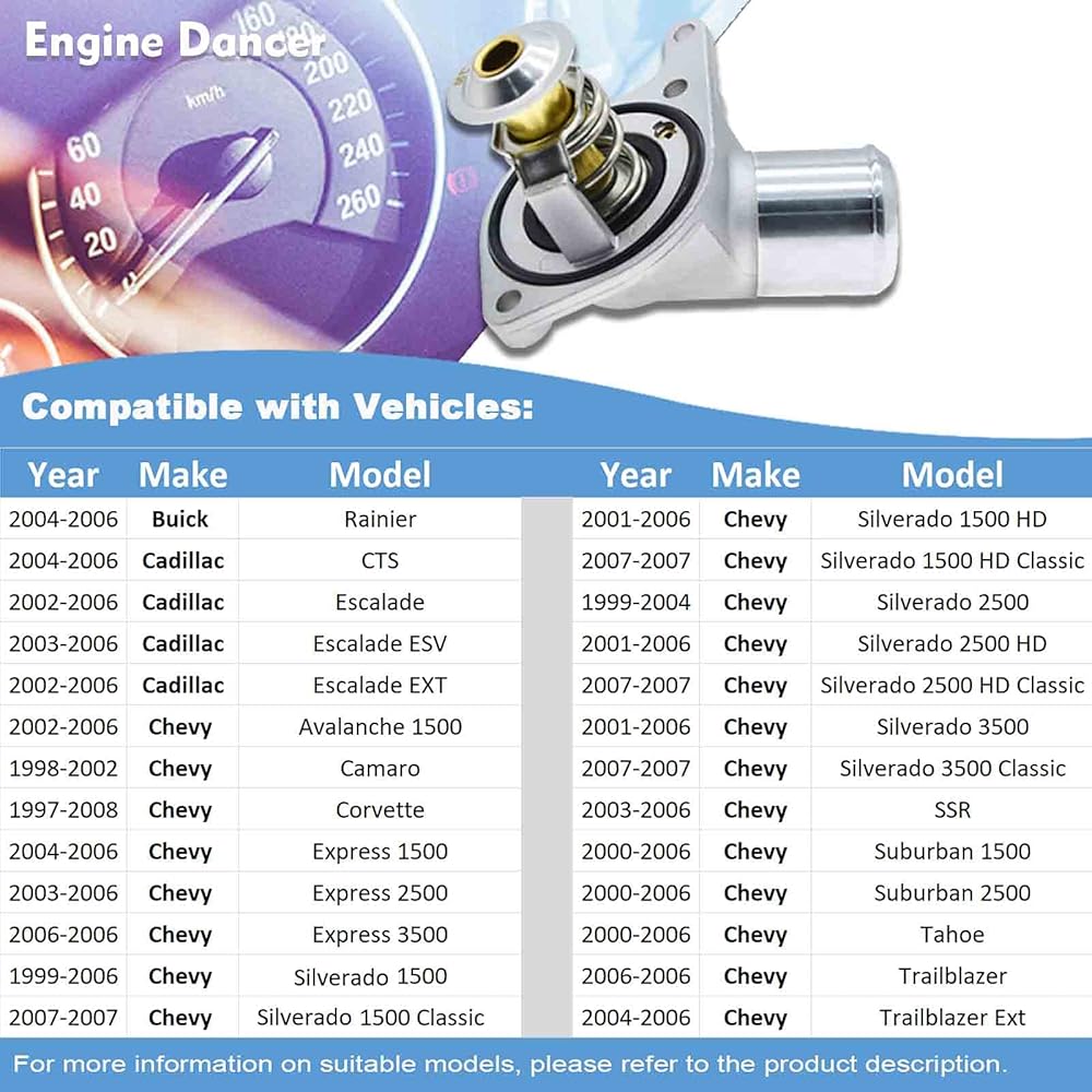 【تجهيز مبيت بدء تشغيل سائل تبريد المحرك】متوافق مع سيارات Chevy Bucik & Cadillac 4.8 5.3 5.7 6.0 V8 - 2002-2006 Rainier | 2004-2005 سي تي اس | اسكاليد 2002-2006 | 2002-2006 أفالانش 1500 | 1998-2002 كمارو | كورفيت 1997-2008 | 2003-2006 اكسبريس 1500، 2500، 3500 | 1999-2006 سيلفرادو 1500، 2500 | 2001-2006 سيلفرادو 3500 | 2003-2006 الاشتراكية السوفياتية | 2000-2006 سوبربان 1500، 2500 | تاهو 2000-2006 | 2003-2006 تريل بليزر ترموستات يحتوي على مجموعة مدخل المياه
