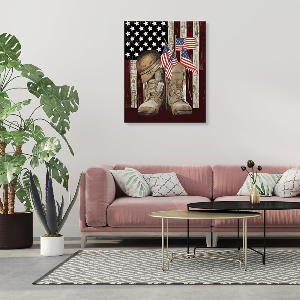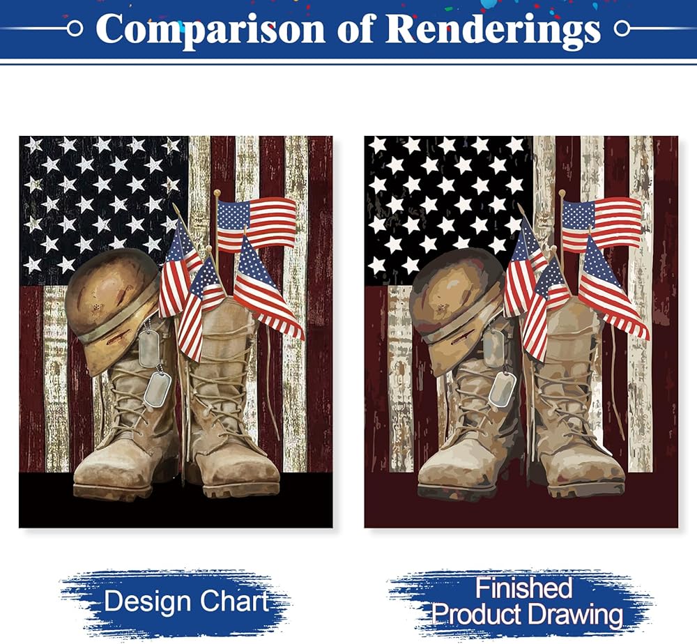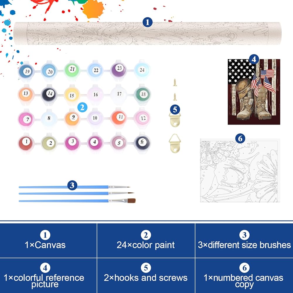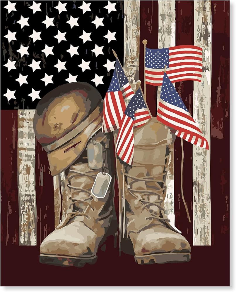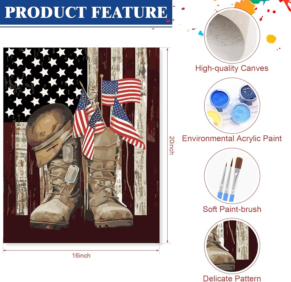 طلاء Wodison DIY بالأرقام للبالغين والأطفال، مجموعة طلاء زيتي للأحذية الوطنية ذات العلم الأمريكي على القماش مقاس 16 × 20 بوصة لديكور جدار المنزل للمبتدئين (بدون إطار)