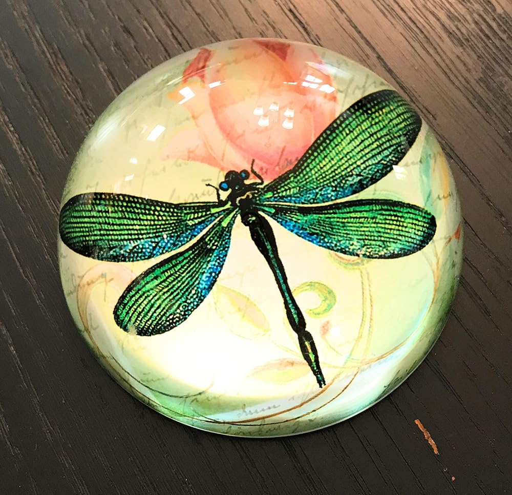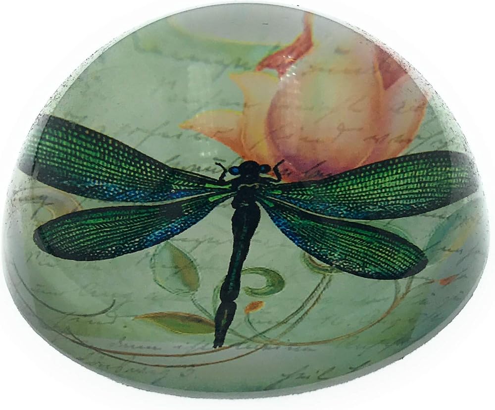 BOYIRI Value Arts Green Dragonfly Glass Dome ثقالة الورق، مع نص فرنسي، قطر 3 بوصات