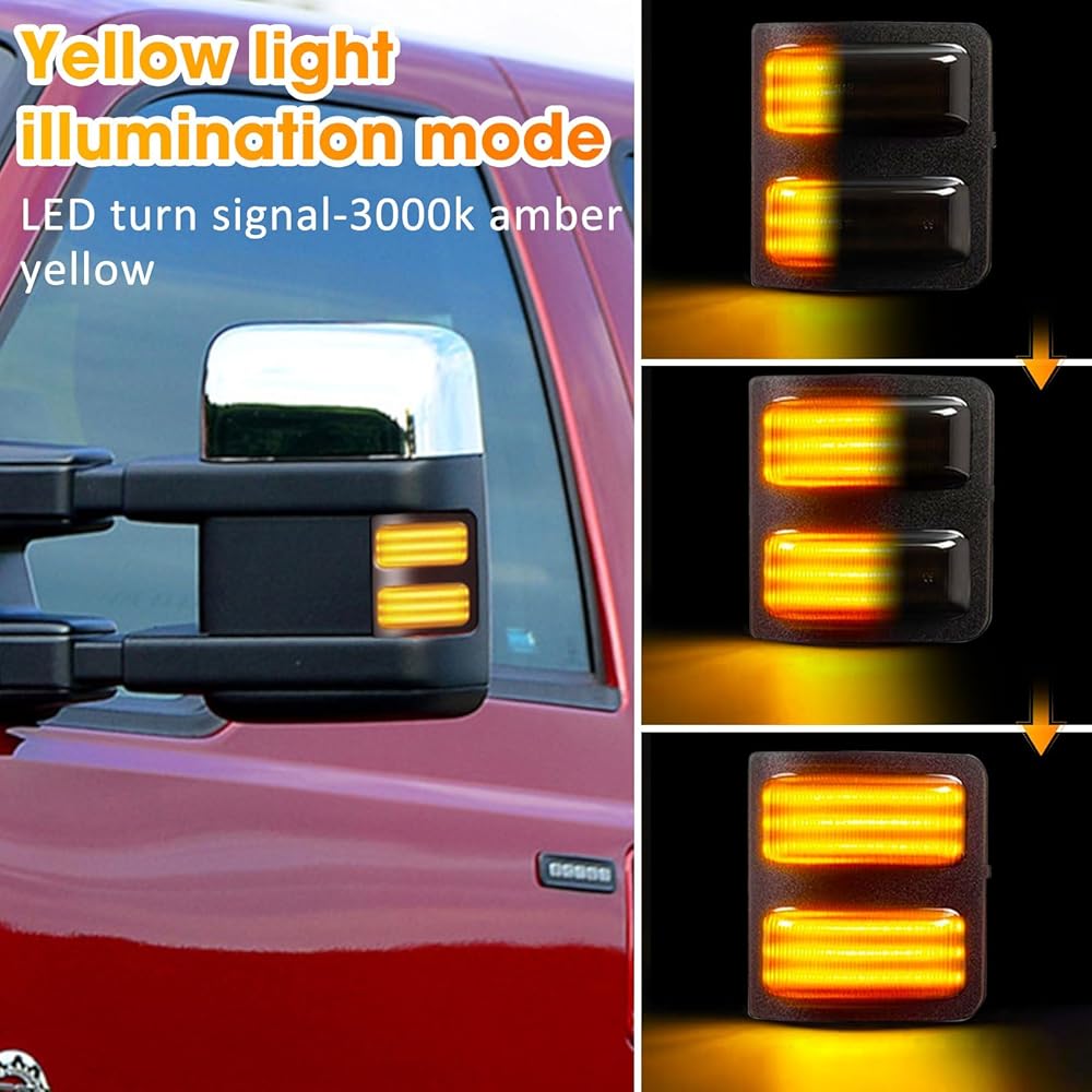 التوافق -- مناسب لـ 2008 2009 2010 2011 2012 2013 2014 2015 2016 F250 F350 F450 F550 Super Duty مع مرايا جانبية من نوع سحب المقطورة من المصنع، تناسب فقط المرايا الجانبية OEM، ولا تناسب أي مرايا جانبية ما بعد البيع