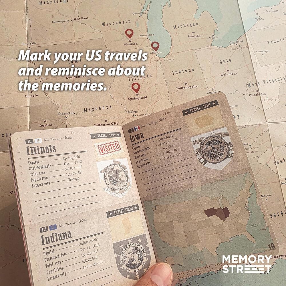 Embark on an Unforgettable Adventure Across America] - With our "US 50 States Passport & Map," you can mark your travels and delve into the United States. This unique travel companion is your ticket to documenting your journey through the vast landscapes and vibrant cities of the USA, ensuring each adventure is unforgettable.