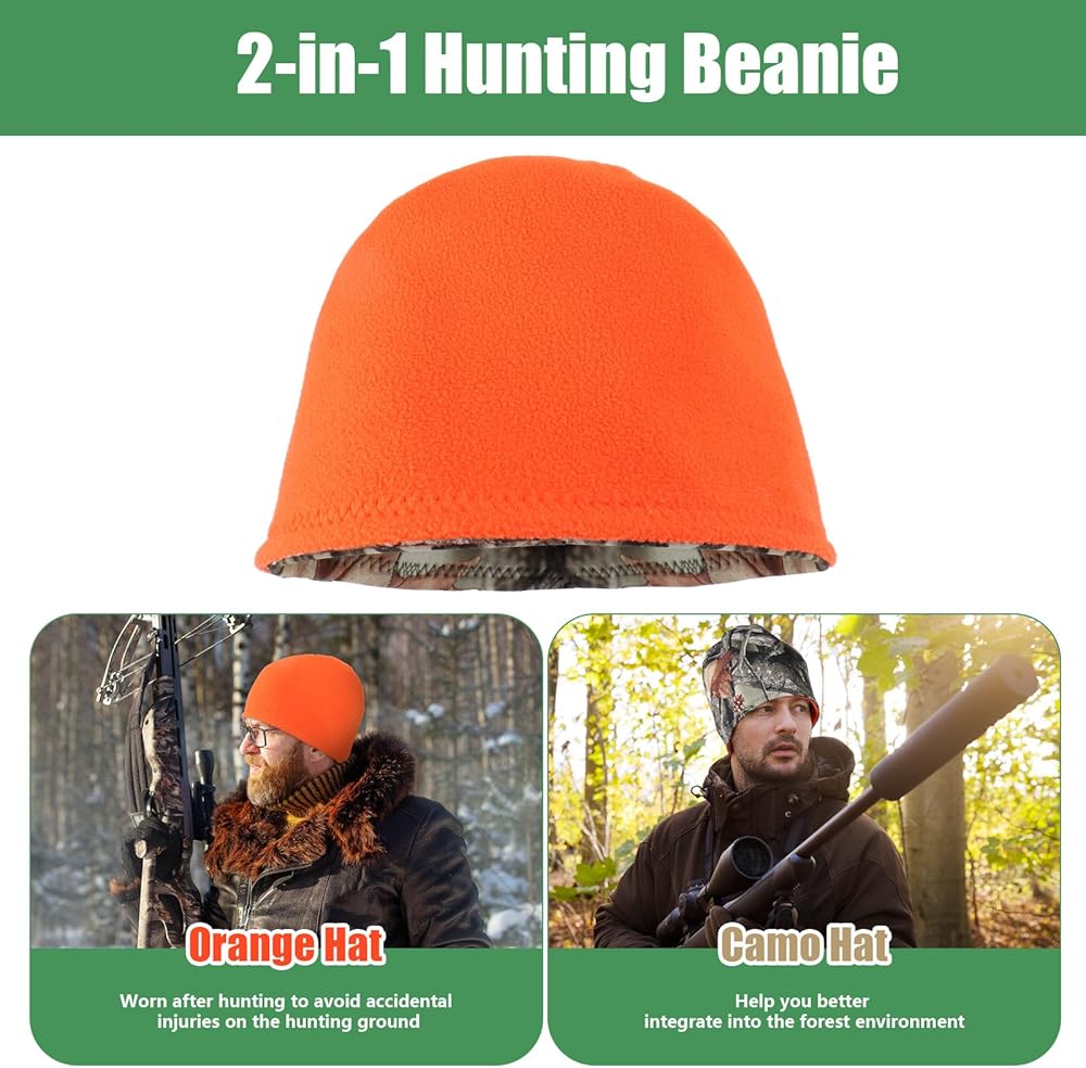 2-In-1 Hunting Hat: Camouflage and orange double-sided design. The camouflage hat can help you better integrate into the forest environment and allow you to freely enter and exit regular hunting places. At the same time, wear orange hat after hunting to avoid accidental injuries in the hunting grounds