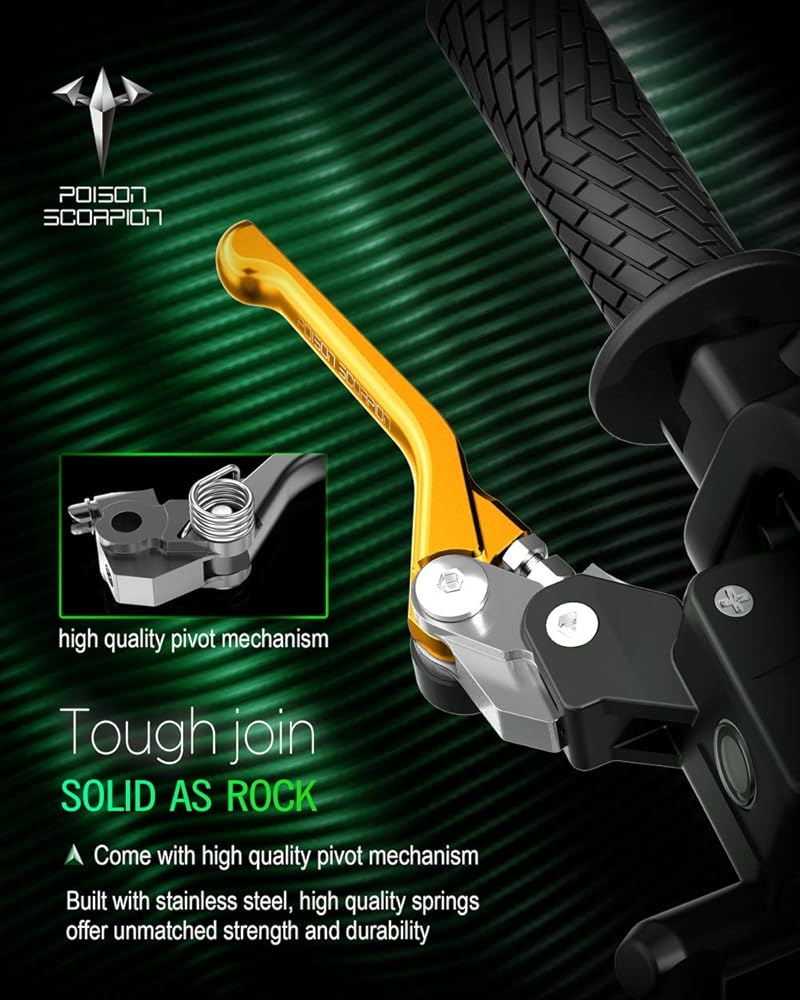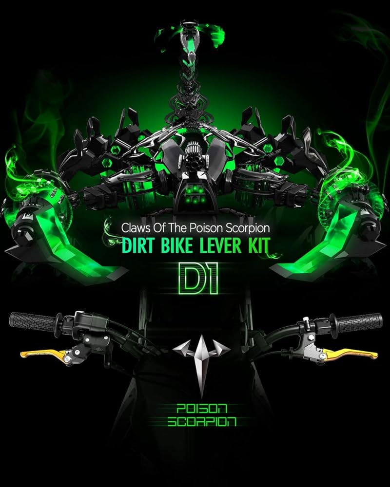 تم تصميم أذرع قابض فرامل الدراجة الترابية بآلية محورية من الفولاذ المقاوم للصدأ يمكن طيها للخارج لمنع الكسر في حالة حدوث اصطدام، من أجل قوة ومتانة عالية.