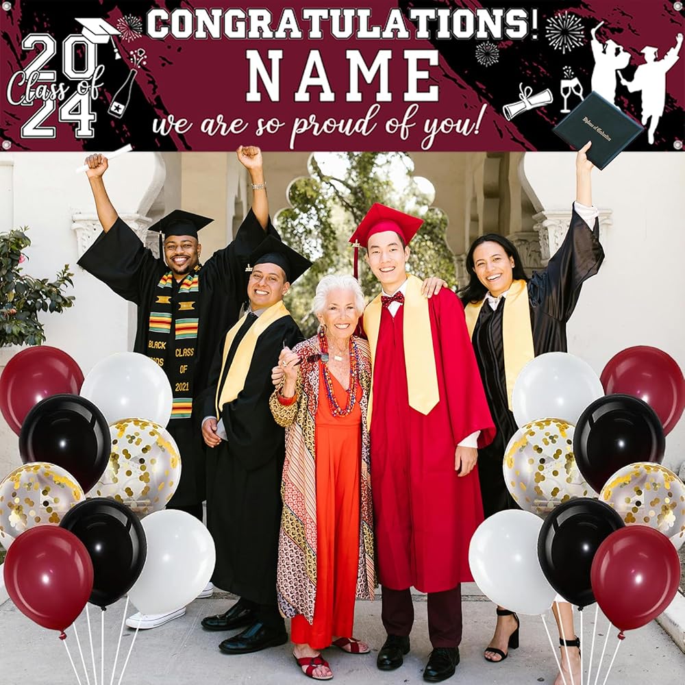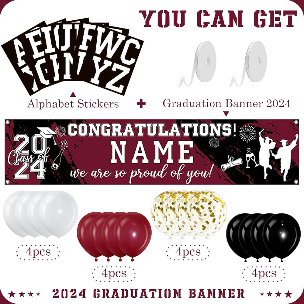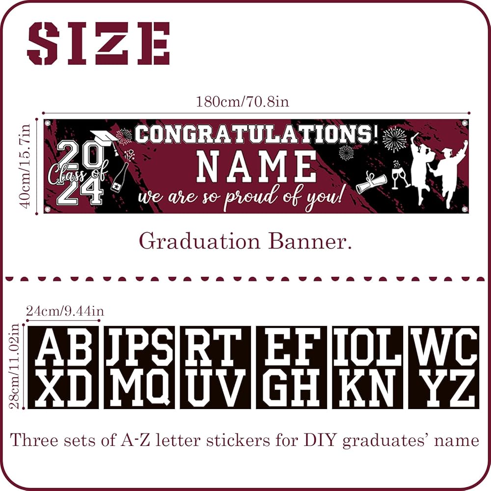 【عناصر التخرج 2024】: تم تصميم لافتة التخرج اللافتة للنظر هذه بكلمات التخرج 2024 ورموز التخرج الكلاسيكية مثل ألواح الهاون والدبلومات المطوية. اختر لافتة التخرج المخصصة لدينا لإضافة بريق إلى حفلتك وتسجيل اللحظات الجميلة.