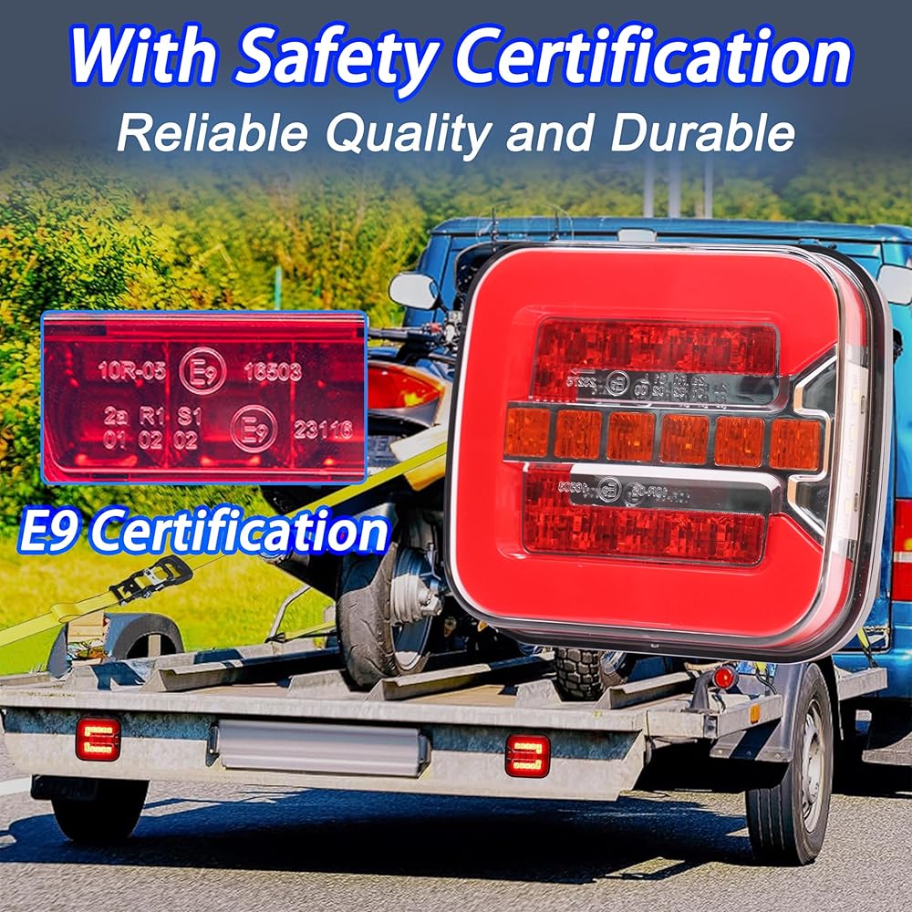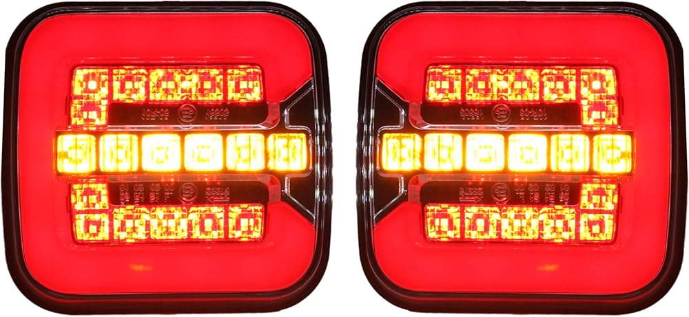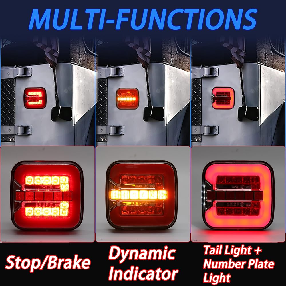 【إضاءة خلفية مدمجة ومربعة بتصميم عصري】: لا تتميز مصابيح ذيل المقطورة Polieez فقط بمصابيح LED متعددة السطوع، ولكنها تأتي أيضًا بمظهر منتج فريد ومبتكر، مثالية لأولئك الذين يبحثون عن تجهيز سيارتهم بأحدث التقنيات.
