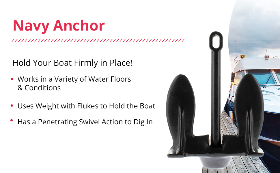 This SeaSense anchor combines weight with flukes and a penetrating swivel action to dig in and secure your boat in place; it's one of our must-have boat accessories and products. The SeaSense Navy Anchor works in tidal waters as well as a range of water floors, including rock, sand, mud and weed bottoms. Made to last, this anchor will secure your boat for years. This boat accessory is the perfect Christmas or holiday present or birthday or Mother or Father's Day gift. At SeaSense, we aim to help our customers save time and have more fun on the water, without breaking the bank. We've been providing innovative marine and trailer products since 1984;