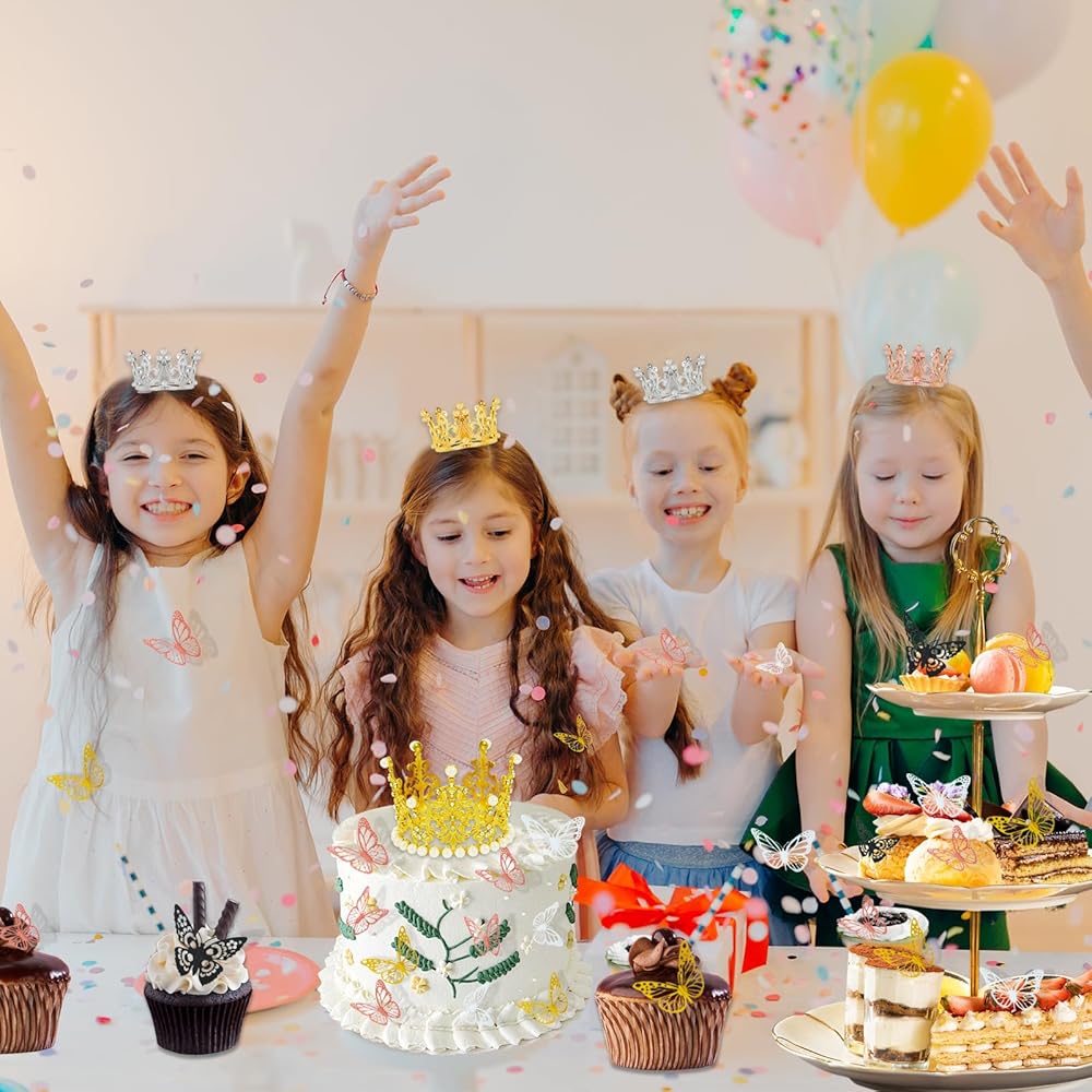 زينة الحفلات. يمكن استخدام هذه الدبابيس والتاج الماسي كديكور لكعكة عيد الميلاد وكعكة الزفاف وكعكة الذكرى السنوية وكعكة استحمام الطفل وكعكة الحفلات. يمكن وضع الفراشات الذهبية على الكعكة أو لصقها على الزهور وأي ديكورات باستخدام نقاط اللاصق المتضمنة لدينا.