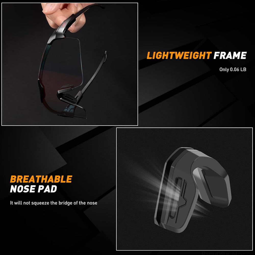【تصميم خفيف الوزن】 مع إطار خفيف الوزن، انسَ أنك ترتدي نظارات شمسية رياضية SCVCN في مغامرة، لا تدع النظارات الشمسية الثقيلة تثقل كاهلك، مثالية للاستخدام من خلال ركوب الدراجات، والقيادة، والجري، والبيسبول، وصيد الأسماك، والسباق، والجولف، والكرة اللينة، والتسلق. أو الرحلات أو الأنشطة الخارجية الأخرى.