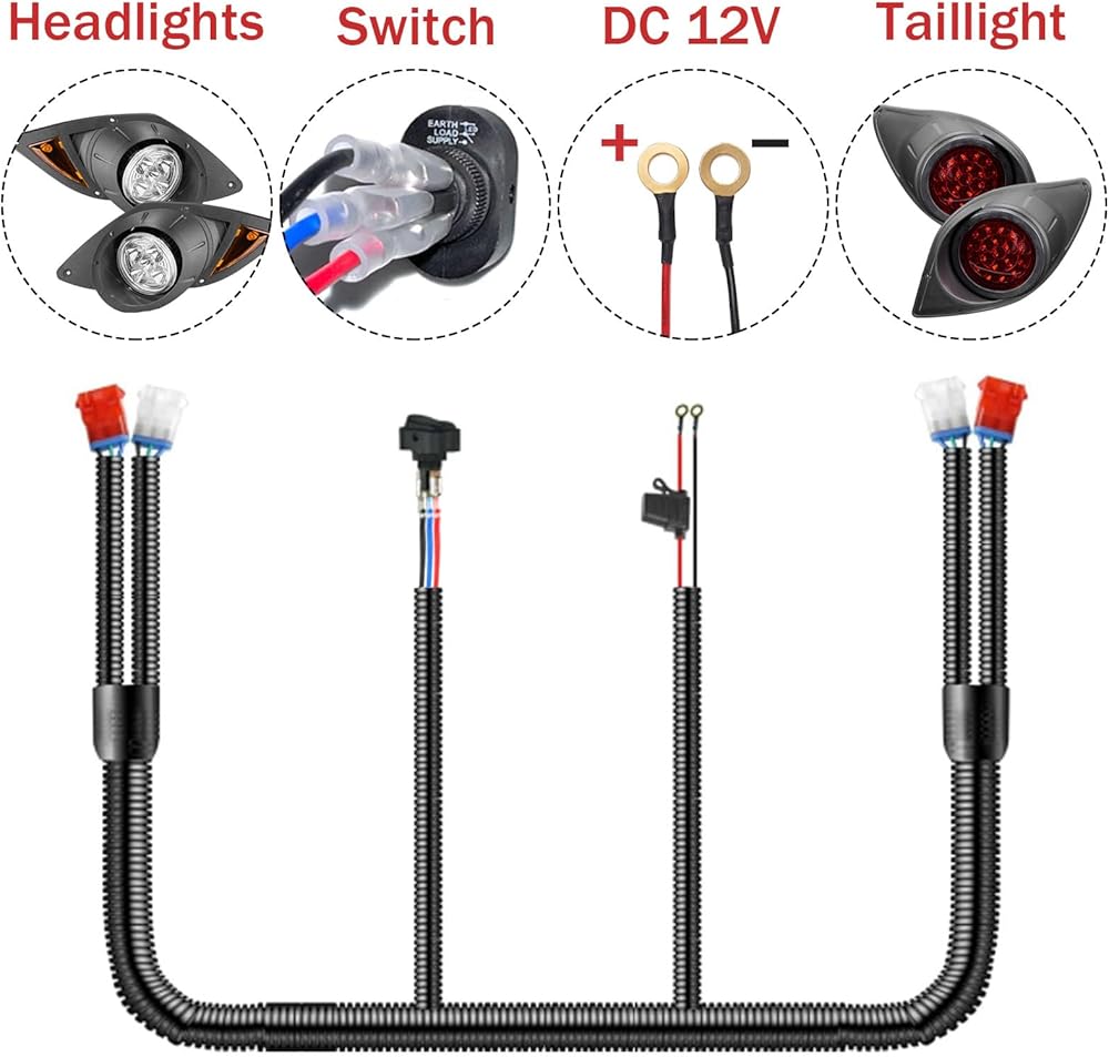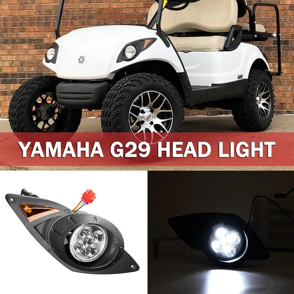 [مجموعة مصابيح عربة الجولف LED] - تم تصميم هذا المصباح الأمامي Yamaha g29 خصيصًا لموديلات الغاز والكهرباء Yamaha Drive G29 2007-UP. يأتي حزام الأسلاك الكامل مع مقابس منتهية مسبقًا، مما يجعل عملية التثبيت أسهل بالنسبة لك.
