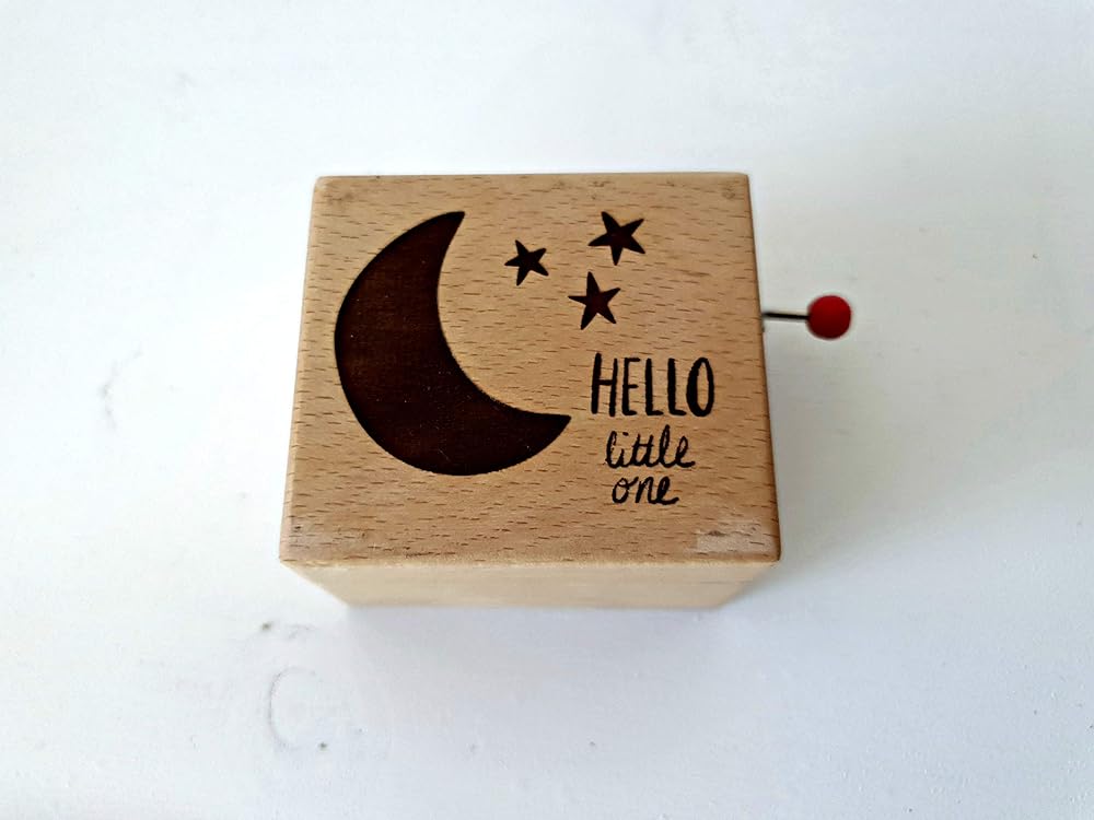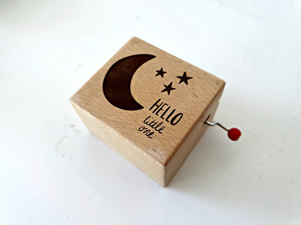 صندوق موسيقى منقوش لحديثي الولادة مزين بالقمر والنجوم