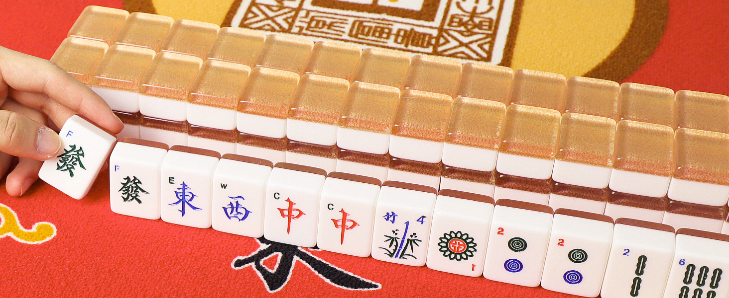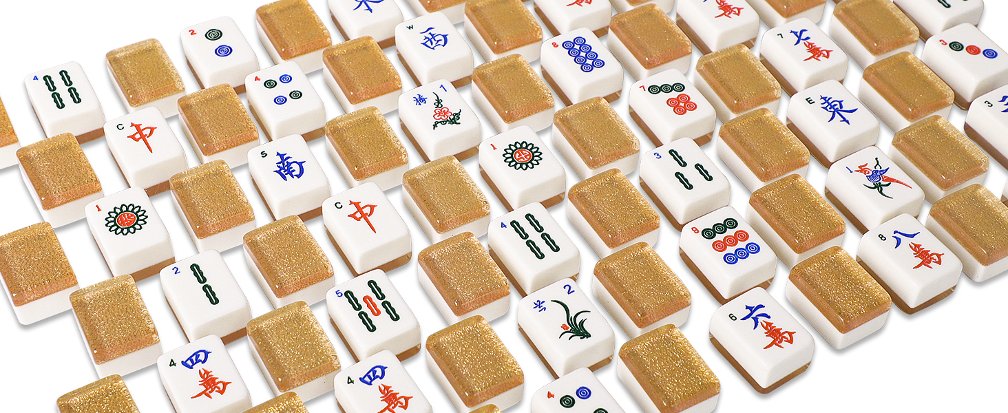 بلاط مشرق وجميل: يرمز الذهب إلى النبل والمجد، والبلاط الذهبي اللامع يلفت الأنظار. بلاط الماجونج مصنوع من طبقتين من الأكريليك. الطبقة الخلفية ذهبية اللون، مما يجعل البلاط لامعًا وجذابًا للغاية. تتميز طباعة بلاط mah jong بالوضوح والنقش بالأرقام العربية، لذلك لا داعي للقلق بشأن عدم فهم اللغة الصينية.