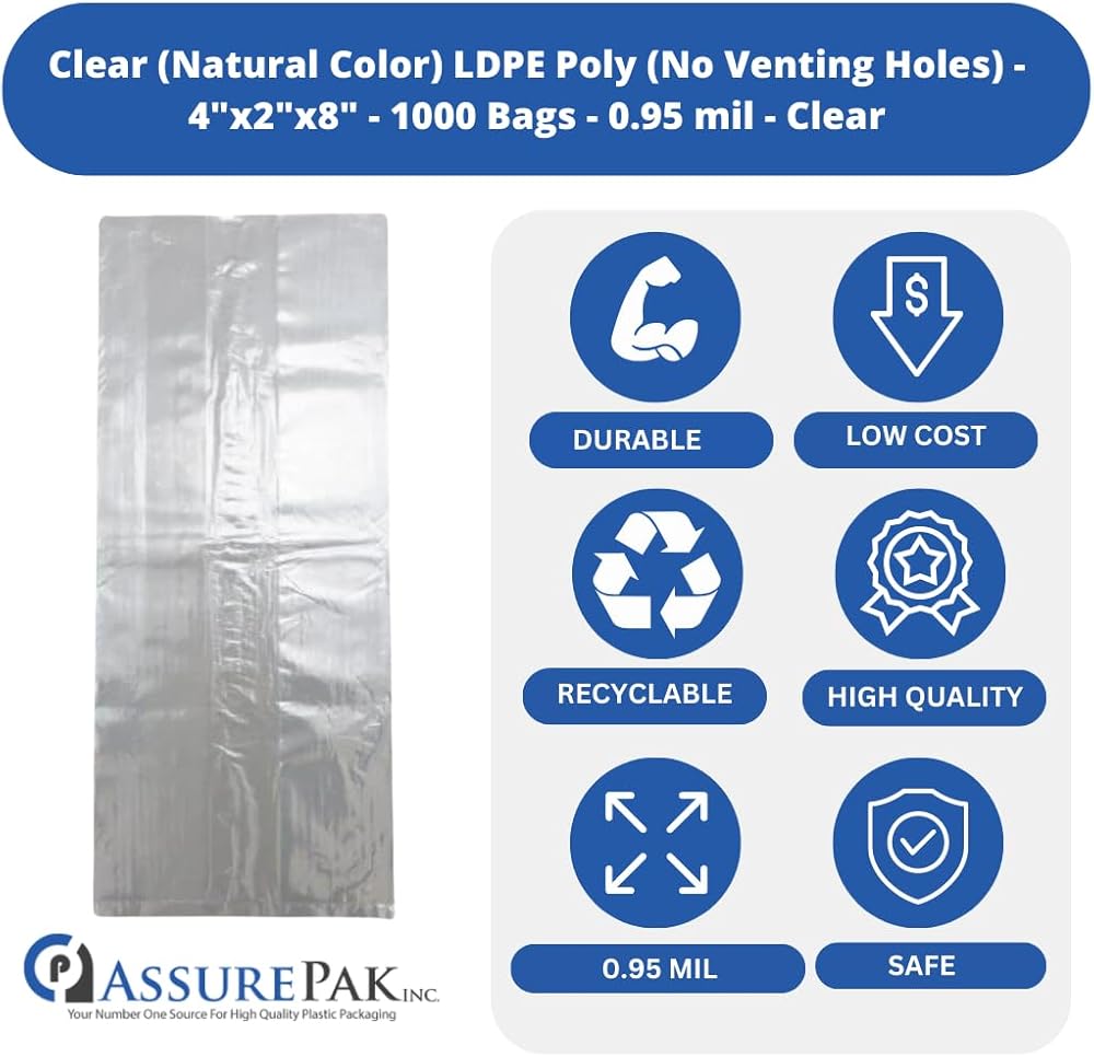 Crafted from high-quality Low-Density Polyethylene (LDPE), these bags boast a sturdy 0.95 mil thickness, providing reliable strength to safeguard your items from moisture, dust, and external contaminants. The natural color lends a clean and unobtrusive appearance, making it suitable for a wide range of uses.