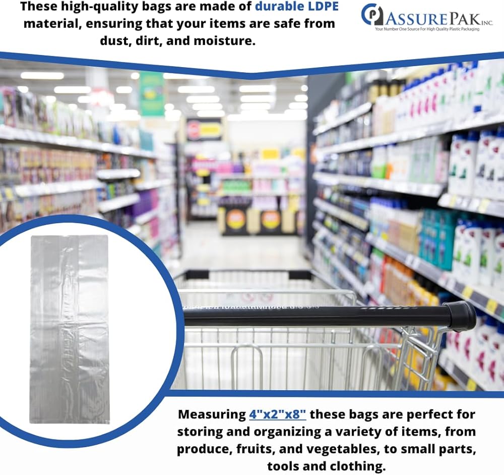 Plastic Produce Bag for Bread and Groceries - your ultimate solution for efficient and hygienic food storage. With a pack of 1000 bags, each measuring 4"x2"x8", this product ensures you have an ample supply to manage your everyday shopping and storage needs.
