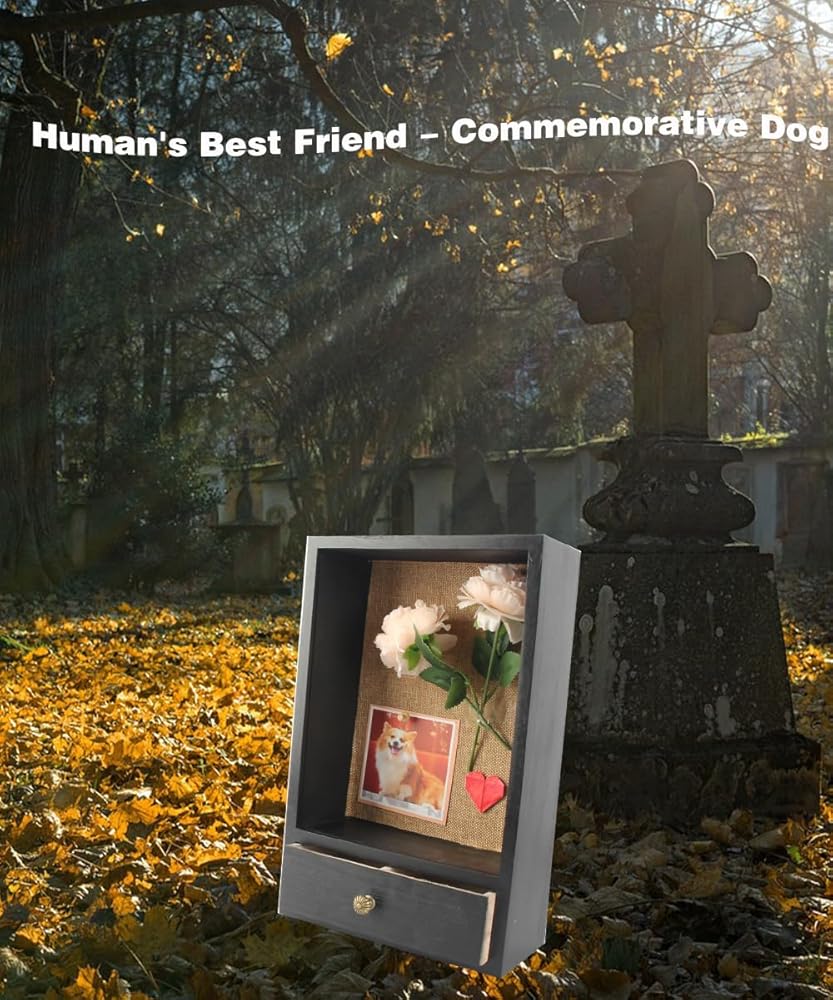 صندوق الظل التذكاري للكلاب، هدية تذكارية لكلب متوفى: يمكنك استخدام قلم لتسجيل معلومات وهوية كلبك أو حبيبك على الصندوق كذاكرة دائمة، يرجى إزالة الغشاء الواقي من لوح الأكريليك قبل الاستخدام، 9 × 14 × 4 بوصة إطار صندوق الظل إطار صندوق الظل مع أدراج، صندوق عرض صندوق الظل مع إطار صور نافذة زجاجية - مصنوع من الخشب القوي والزجاج المقسى عالي الجودة. يوفر لك مساحة لوضع أغراض حيوانك الأليف، مثل زجاجة صغيرة من الرماد، والألعاب الصغيرة، والطوق، وما إلى ذلك. إحياء ذكرى الحيوانات الأليفة، أو أي تذكارات تريدها