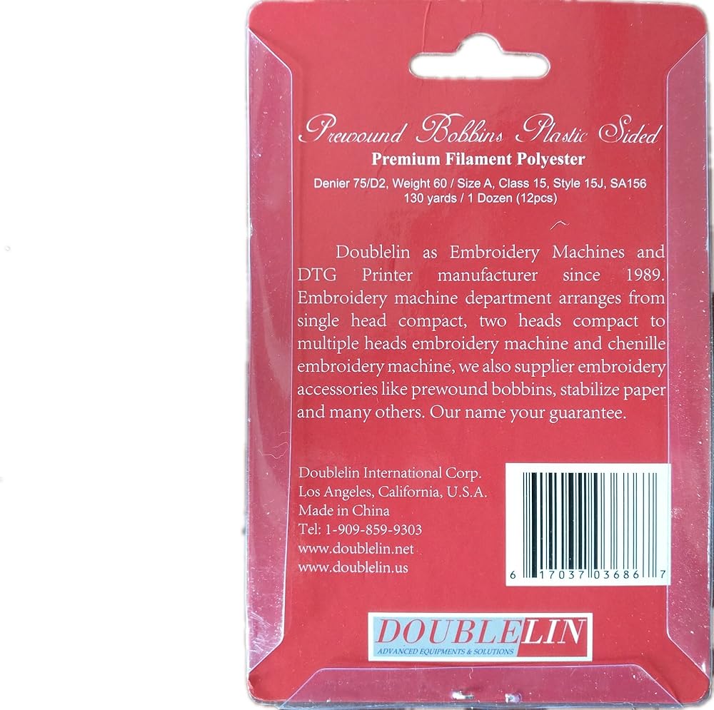 بكرة ملفوفة مسبقًا، مقاس A، طراز A، فئة 15، نمط 15J، SA156، مقاس Brother 11.5 بكرة، لون أبيض، جوانب بلاستيكية، 75/D2 بوليستر، 130 سنة، 12 قطعة، الوزن (WT) 60 خيط، Tex 17، Denier 150