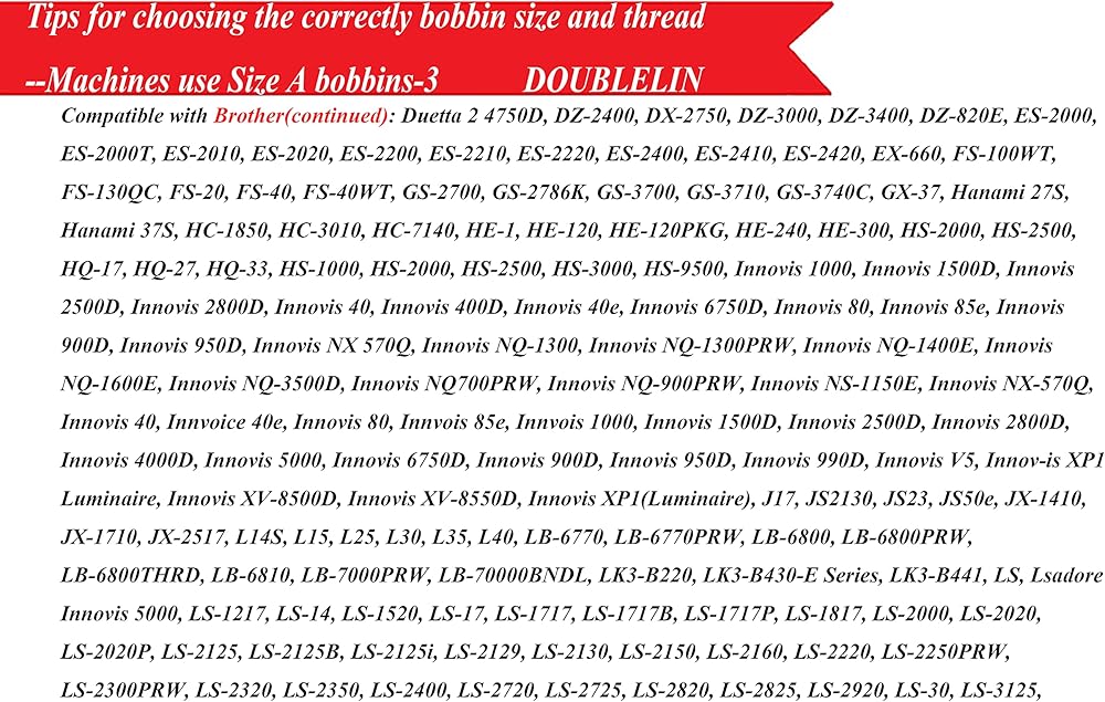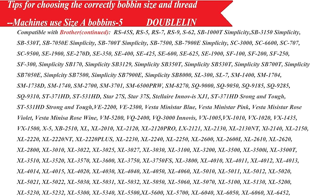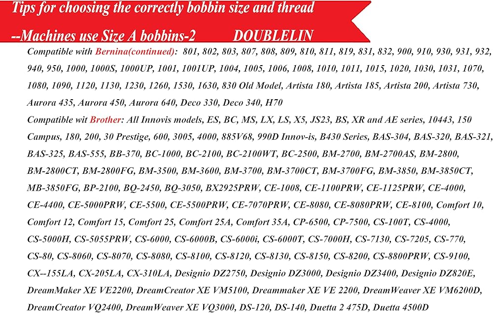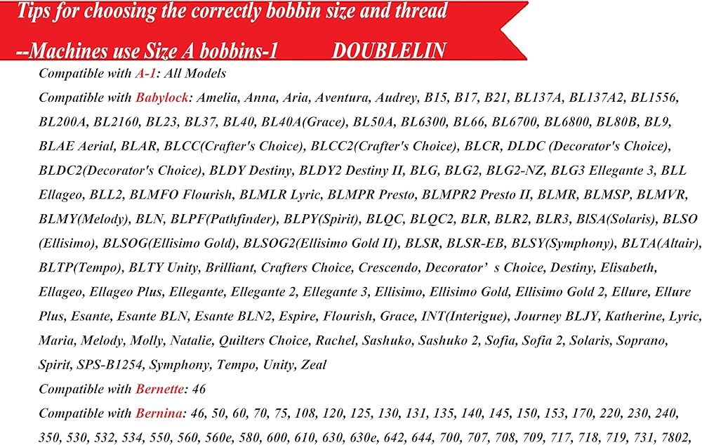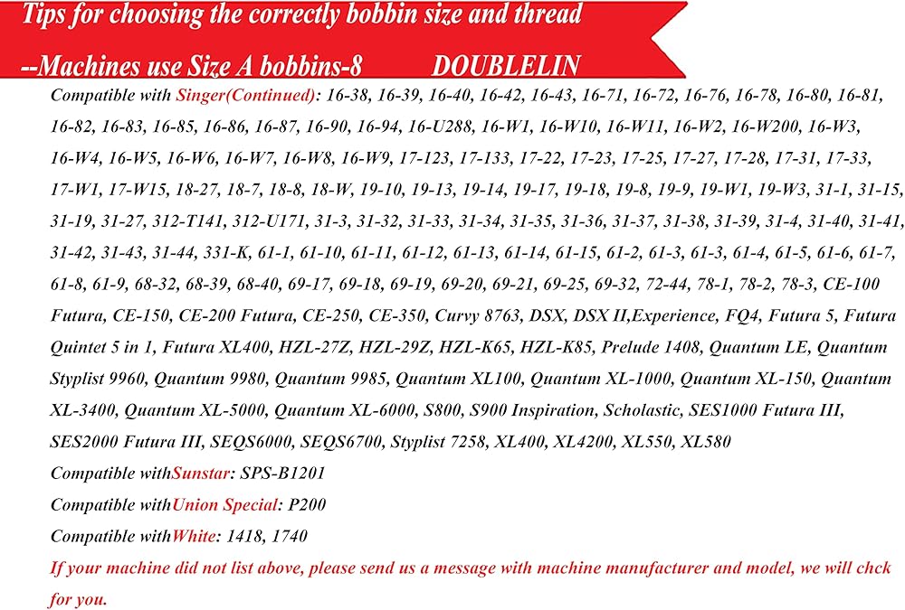 متوافق مع معظم نماذج A1، Babylock، Berenia، Brother، Janome، Juki، Kenmore، Necchi، New Home، Pfaff، Simplicity، Singer، نماذج أخرى يرجى التحقق معنا