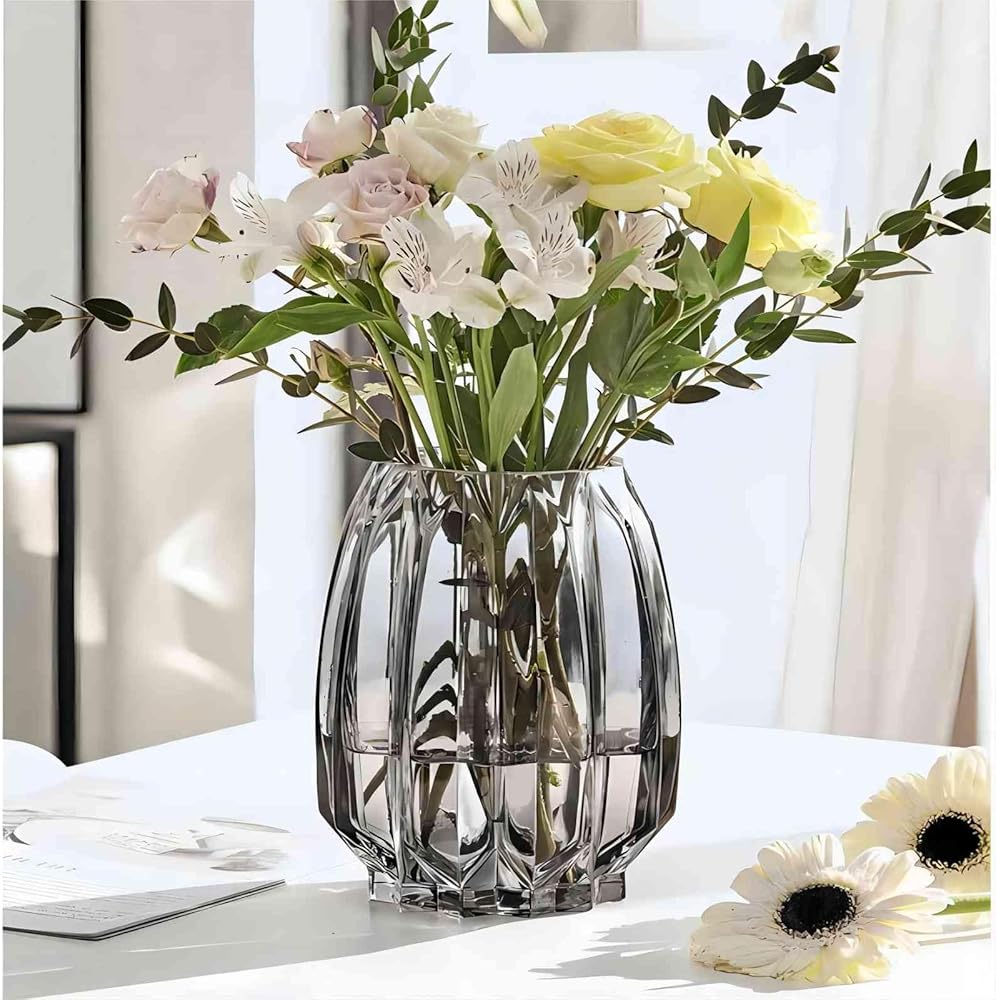 【التصميم】حجم المزهرية (العرض والارتفاع) مناسب لمعظم الزهور (مزهرية مرنة لأنواع مختلفة من الزهور). تتميز المزهرية المسطحة بتصميم مخطط مشهور، ولها فم دائري وناعم لن يؤذي يديك؛ الجسم والجزء السفلي من المزهرية سميكان، لذلك لن يكون من السهل التأرجح عند وضعها على الطاولة.