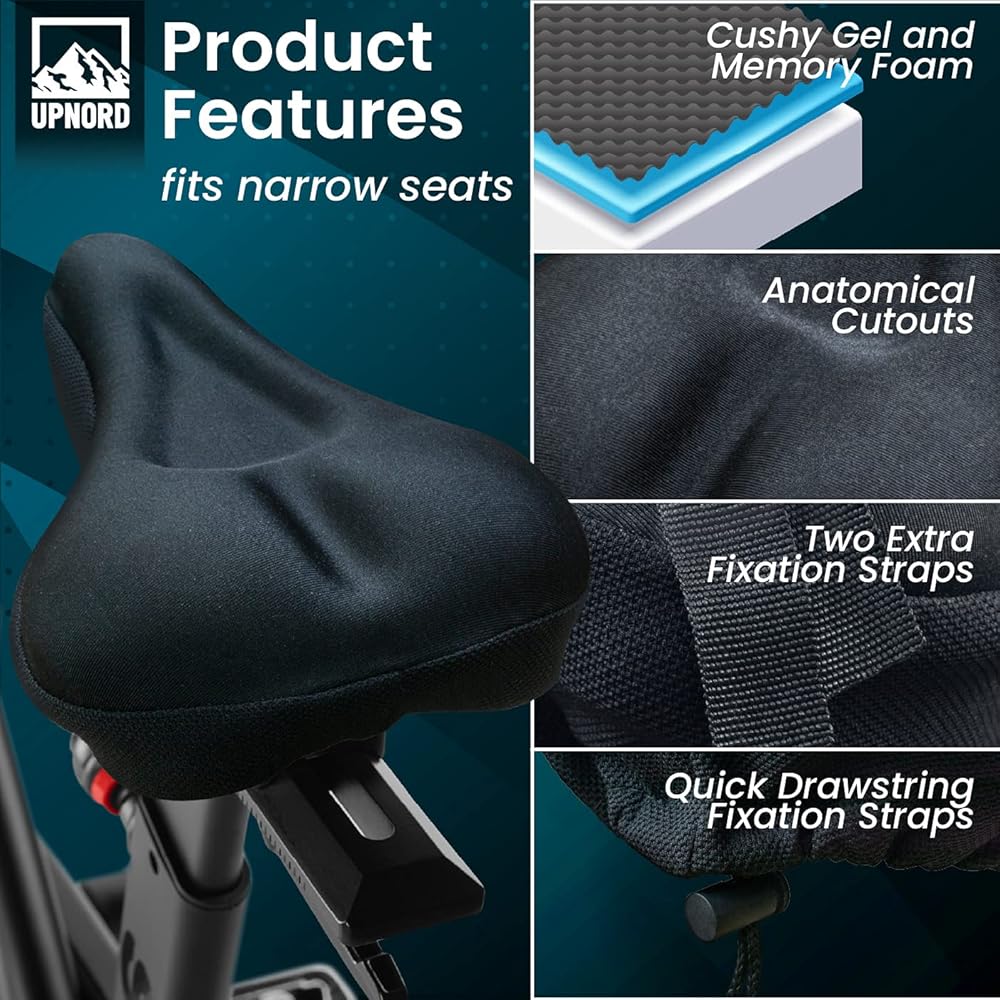 وسادة مقعد الدراجة UpNord تناسب Peloton - غطاء سرج مبطن مريح من إسفنج الذاكرة للدراجة - للنساء والرجال - للتمرين الناعم على الدراجات الثابتة والجبال وغيرها من دورات الدراجات. الحجم: عادي (11x7)