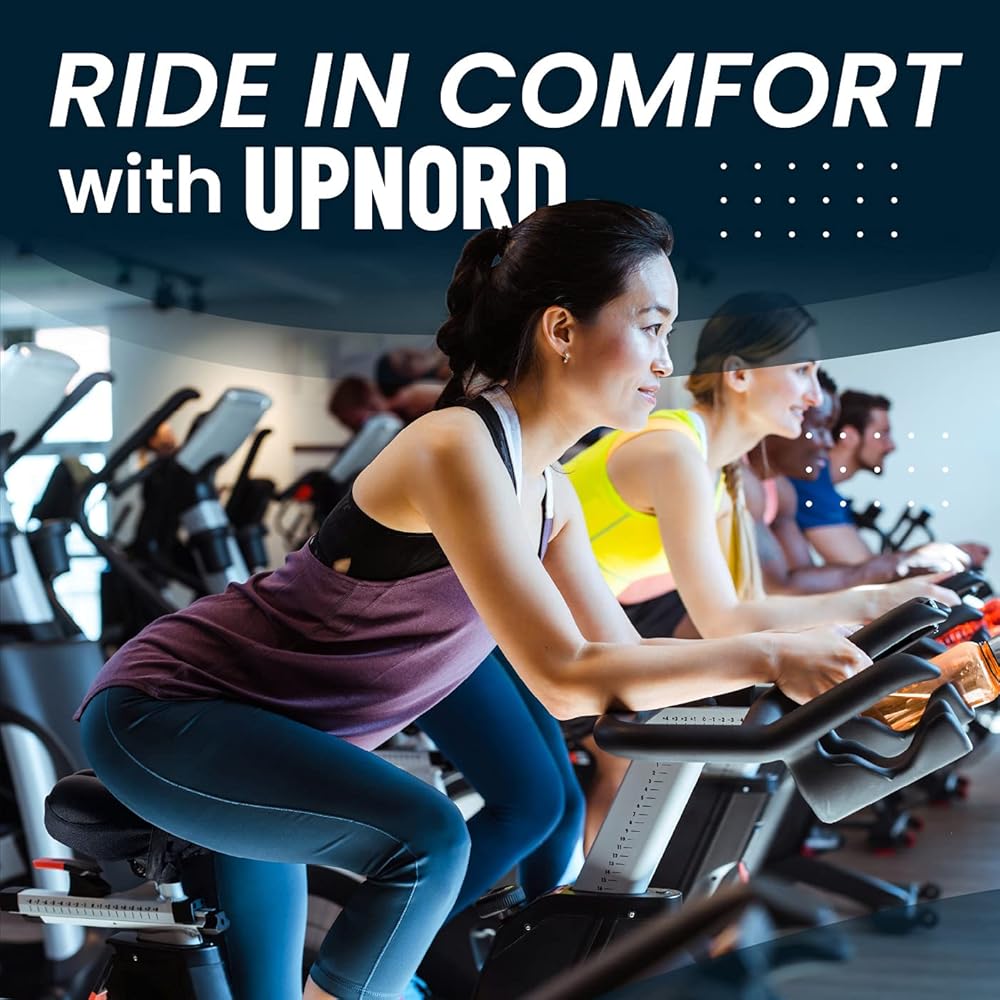 • 🚴 تمرين مريح - انس تجربة ركوب الدراجات المؤلمة وغير السارة مع مقعد الدراجة الأصلي الصلب وغير المريح المثبت مسبقًا. تستخدم وسادة مقعد الدراجة الهلامية من UPNORD مواد فائقة النعومة لتبقيك مرتاحًا لساعات طويلة من الدوران.