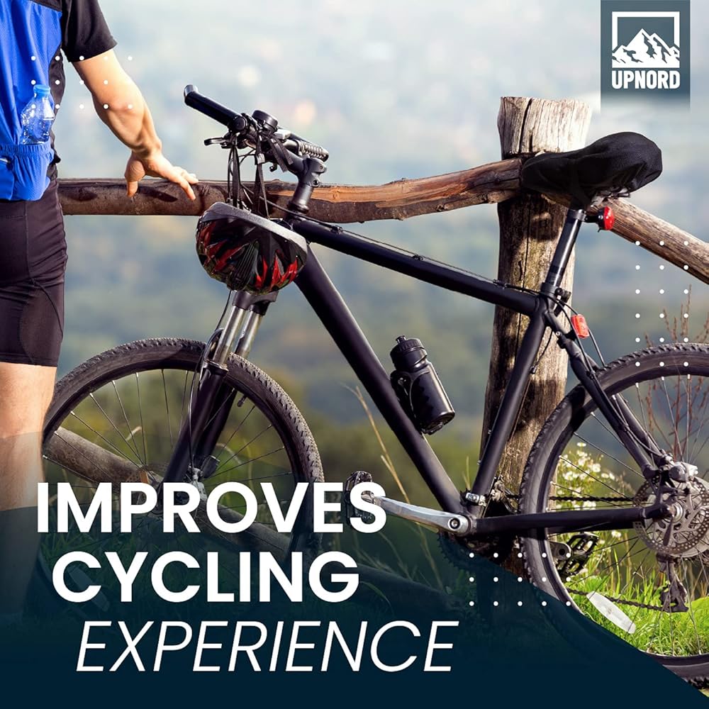 • 🚴 يناسب معظم مقاعد الدراجات - يمكن استخدام غطاء مقعد الدراجة UPNORD على مقاعد الدراجة المختلفة دون استبدال المقعد بالكامل. تبقى في مكانها أثناء الدوران على دراجتك الجبلية الثابتة أو الخارجية بفضل التثبيت البسيط والسريع والآمن.