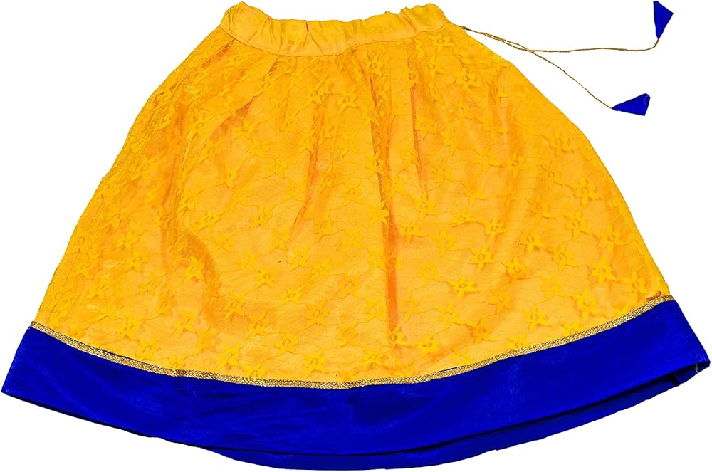 • Blue Art Silk & Yellow Net Lehenga Choli Set, Sleeveless Lehenga Choli Set, Pattu Pavadai, Kids Ethnic Wear
