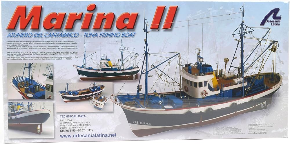 Artesanía Latina - مجموعة نماذج السفينة الخشبية - قارب التونة الإسباني من بحر كانتابريك، مارينا II - موديل 20506، مقياس 1:50 - نماذج للتجميع - مستوى متقدم