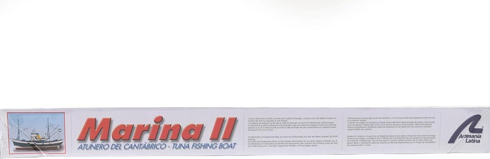 Once it is built, this faithful miniature replica of Marina II tuna boat measures 24.01'' (610mm) length, 6.18'' (157mm) width and 17.71'' (450mm) height.