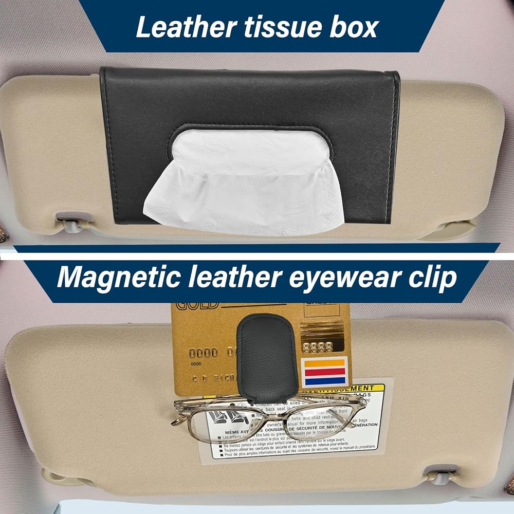 【Gifts】When you buy our sun visor, we're including an exclusive Sunglasses Holder & Car Tissue Holder,Store your eyeglasses, sunglasses, and tissues neatly in your car while maintaining easy access. Upgrade to our Sun Visor - the smart way to declutter your car and keep essentials within your reach.