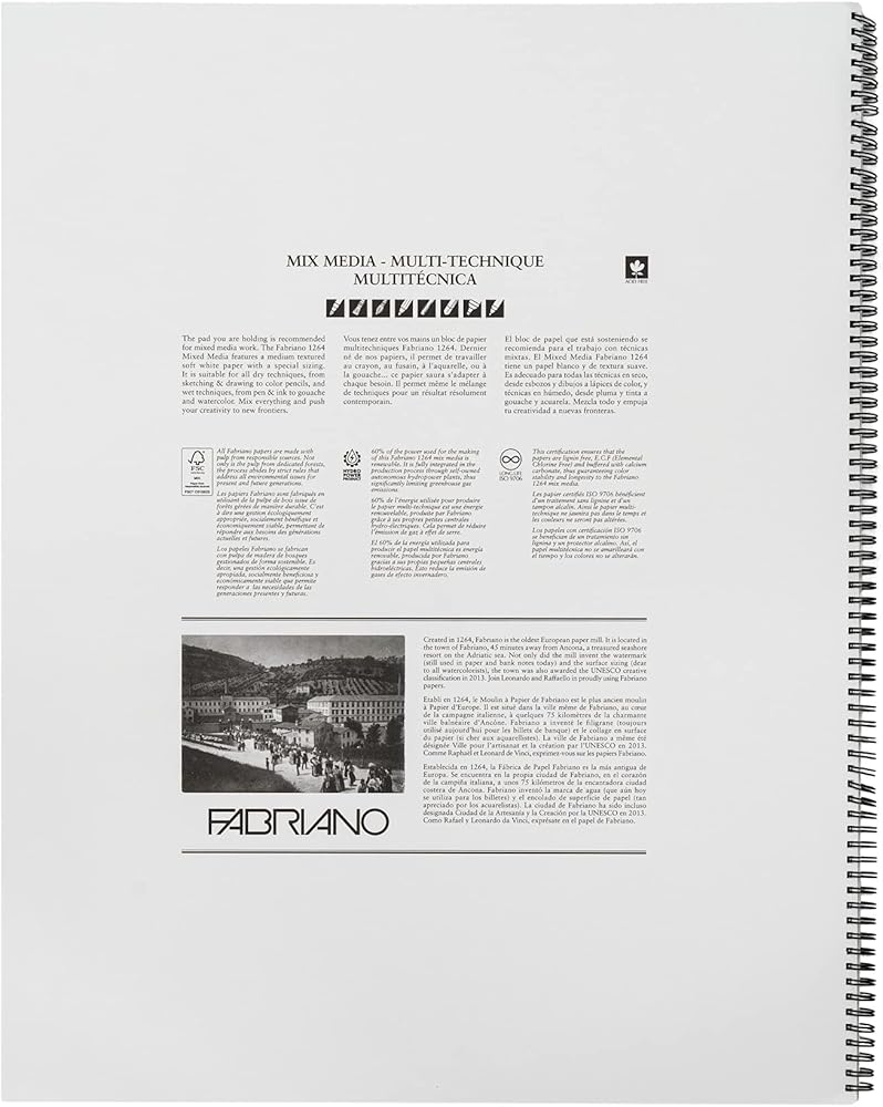 This versatile mixed media pad features 40 sheets of 120 lb. medium textured soft white paper with special sizing, suitable for dry or wet techniques. Apply pencil, colored pencil, charcoal, pastel, pen and ink, marker, acrylic, gouache or washes of watercolor. The spiral-bound design allows you to access the entire page, and the micro-perforated are easy to tear out.
