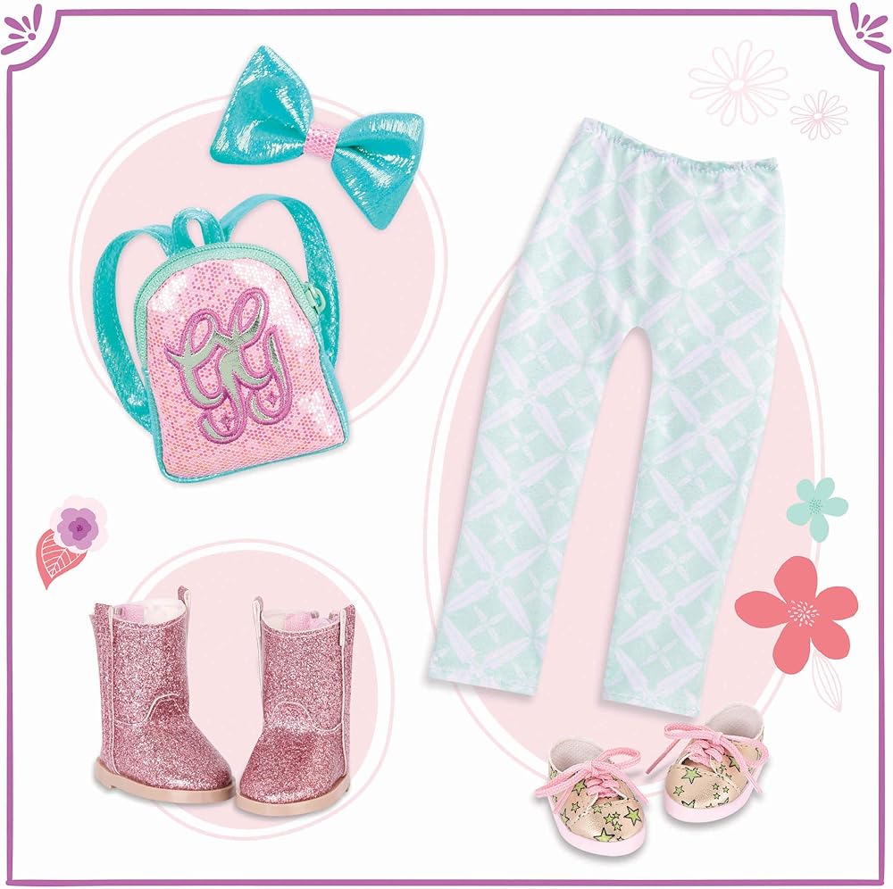 Glitter Girls - ملابس وإكسسوارات الدمى مقاس 14 بوصة - السراويل الضيقة والأحذية وفيونكة الشعر ومجموعة أزياء حقيبة الظهر - Glitter & Stars - ألعاب للأطفال من سن 3 سنوات فما فوق (الوردي والأزرق)