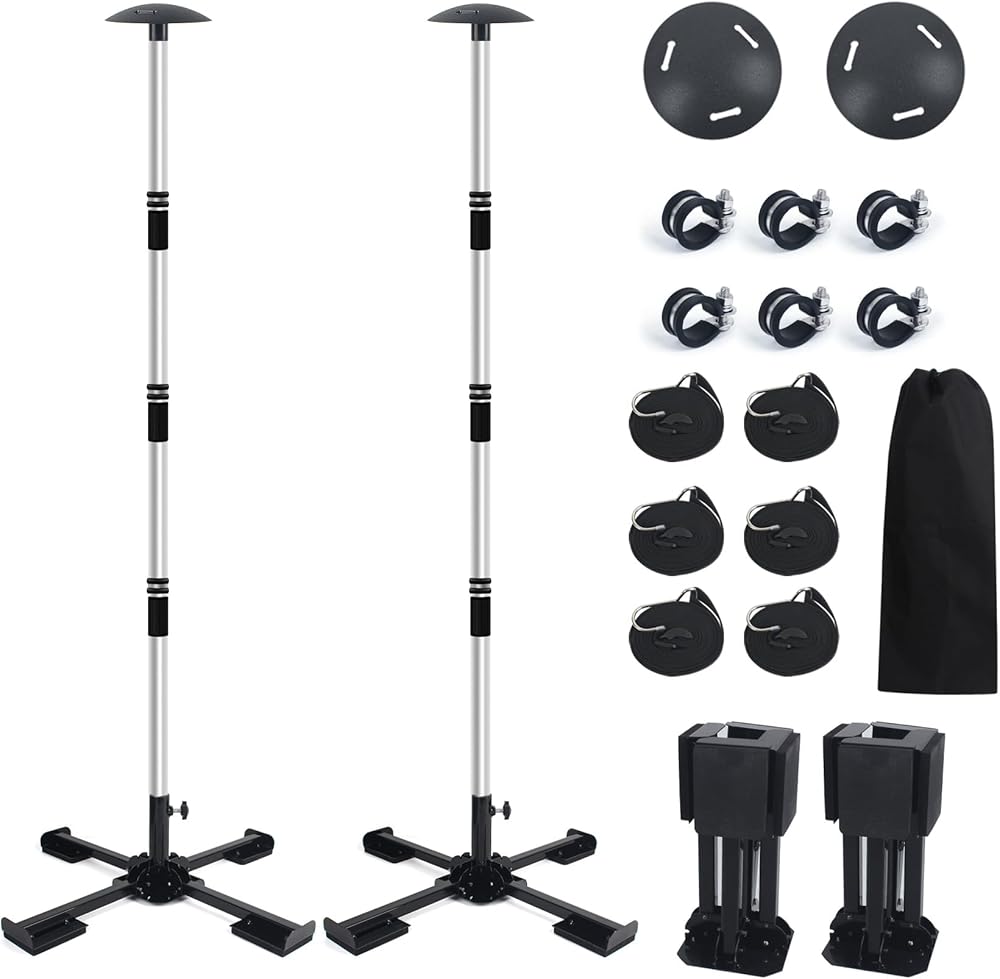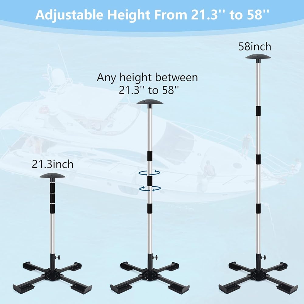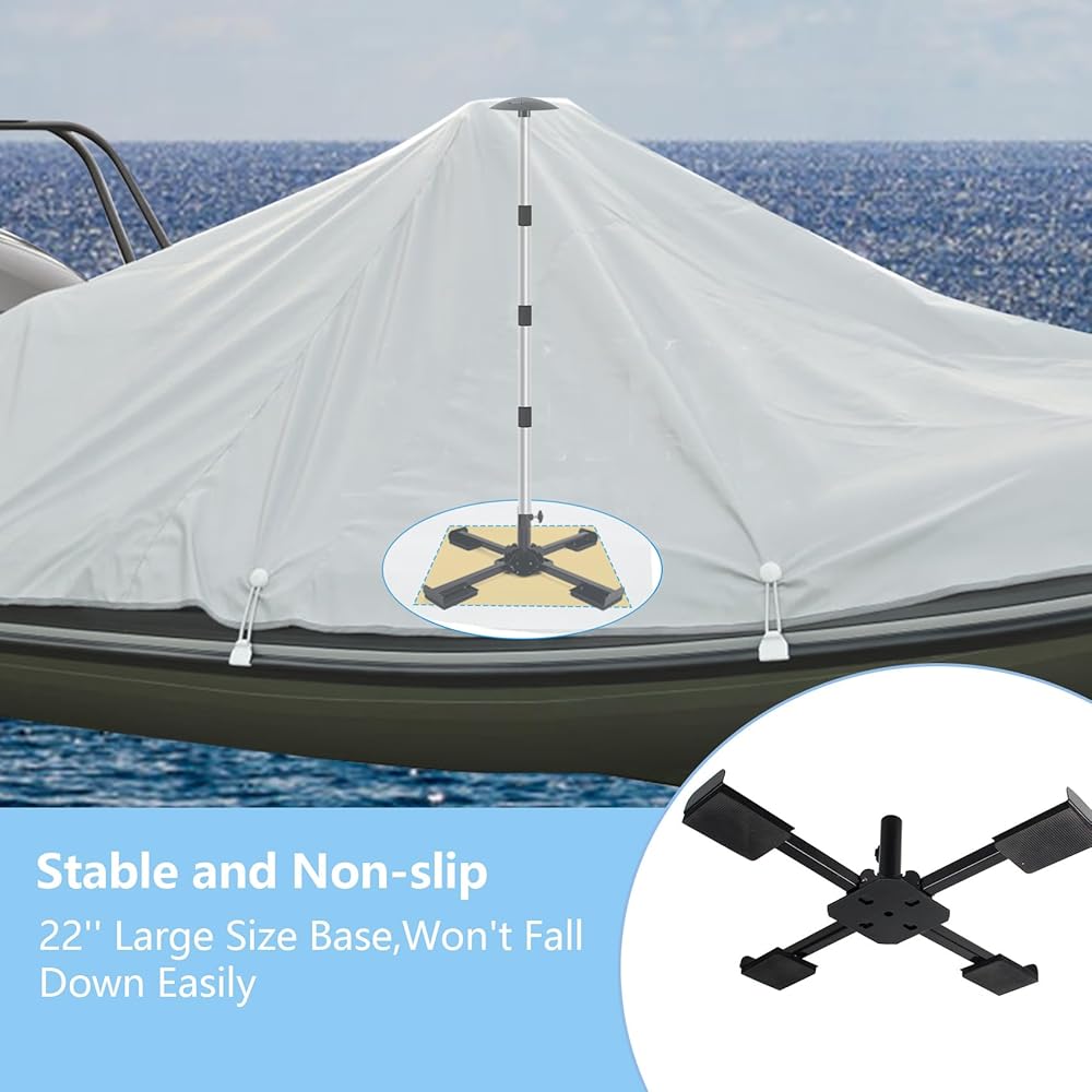 أقطاب دعم غطاء القارب 2 حزمة، نظام دعم غطاء القارب الألومنيوم قابل للتعديل 16 بوصة - 58 بوصة، دعم غطاء القارب العائم المتداخل مع قاعدة متقاطعة معدنية شديدة التحمل مضادة للانزلاق - أسود