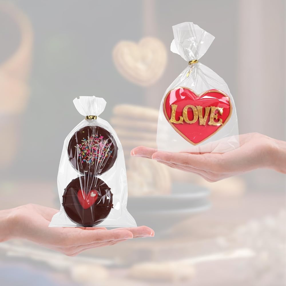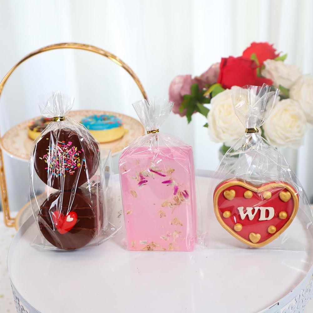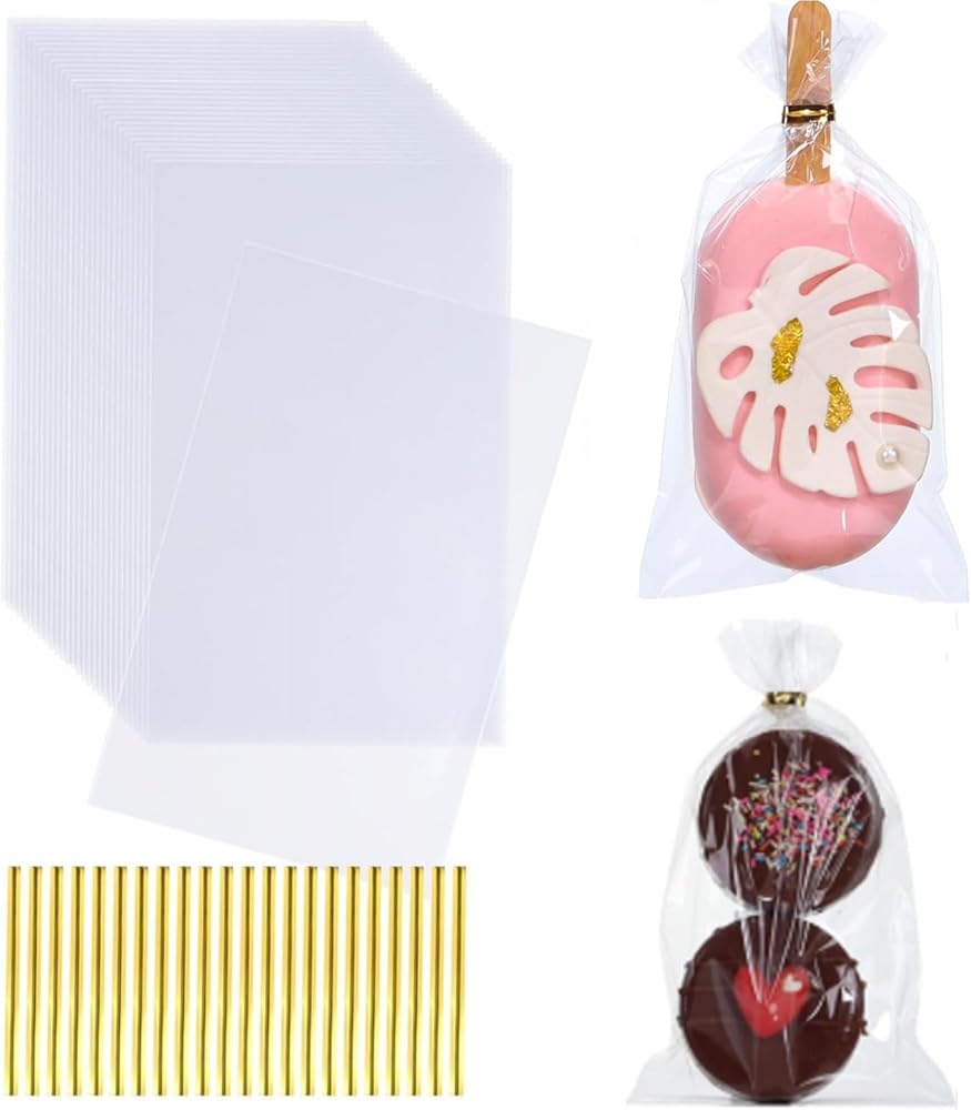 100 حزمة 3 × 6 بوصة أكياس الكعك مع العلاقات والعصي - أكياس السيلوفان واضحة للحلوى ، المخبز ، الحزب لصالح