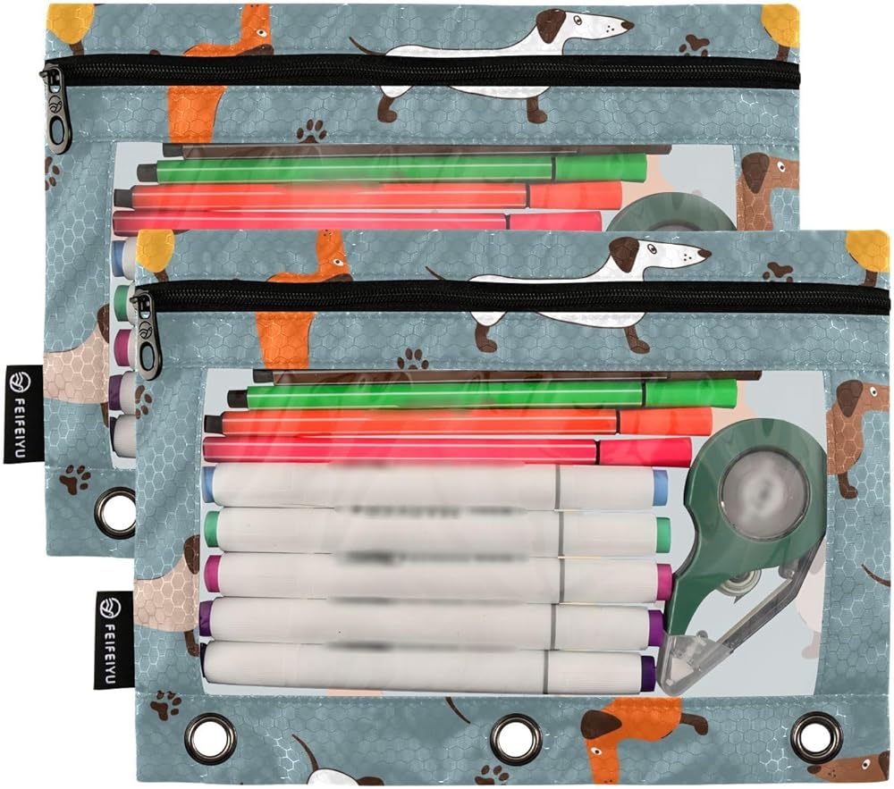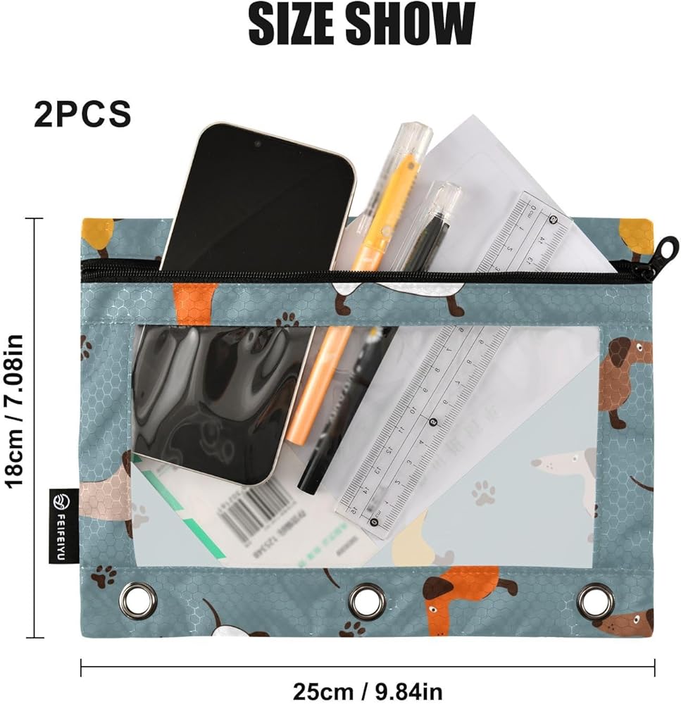 Material & Size: 9.8 X 7 inches. Our binder pencil pouch is made of durable and waterproof polyester fabric with clear PVC