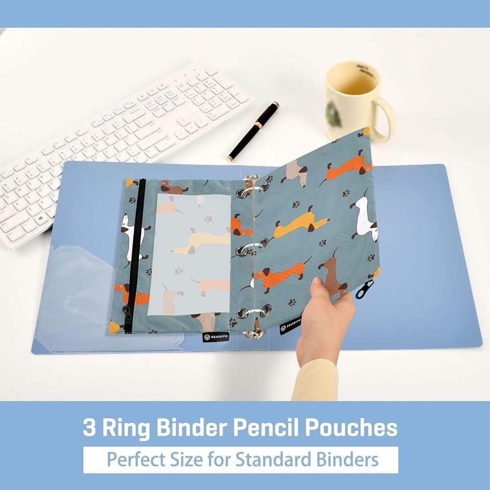 The binder pencil pouch is made of high-quality waterproof polyester fabric, delicate stitching makes them durable and reusable. It matches well with all standard 3-ring binders.