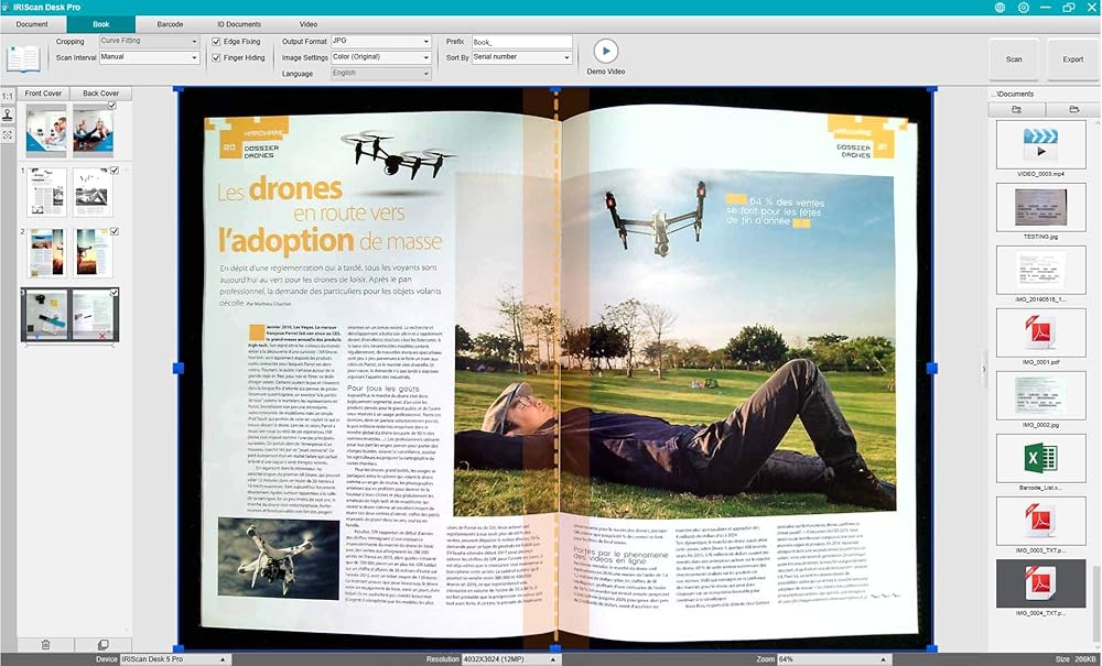 Fast Scanning Speed+Supplemental LED Lights: Ultra-fast scanning speed from IRIScan's image configuration software. Only 2sec/page for both single sheets and A3 double page books. Able to scan any size material smaller than A3.