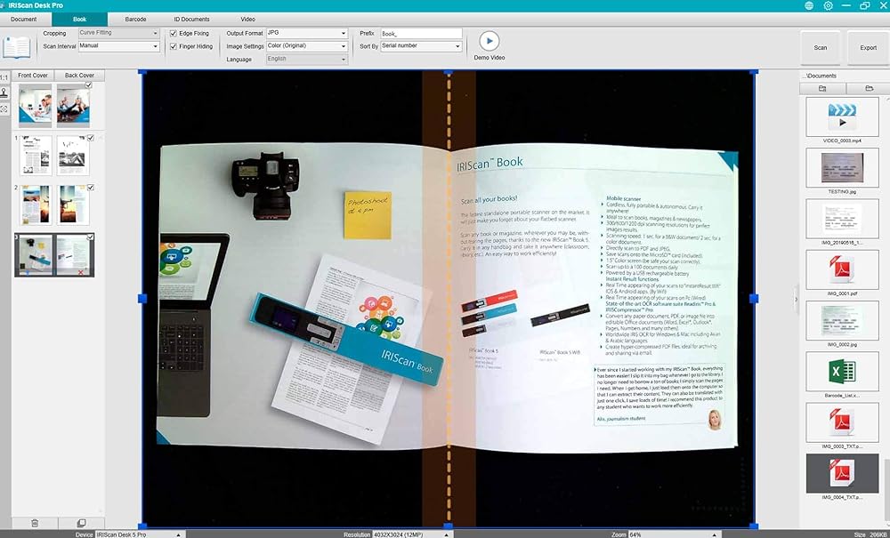 IRIScan Desk 5 Pro: ماسح ضوئي للكمبيوتر المحمول والمستندات I a3 Scanner I Library Scanner I محرر PDF مجاني I ماسح ضوئي محمول I Book Scanner I AI Flattening I المسح التلقائي AI I Finger Hiding I 12MP I Win Mac