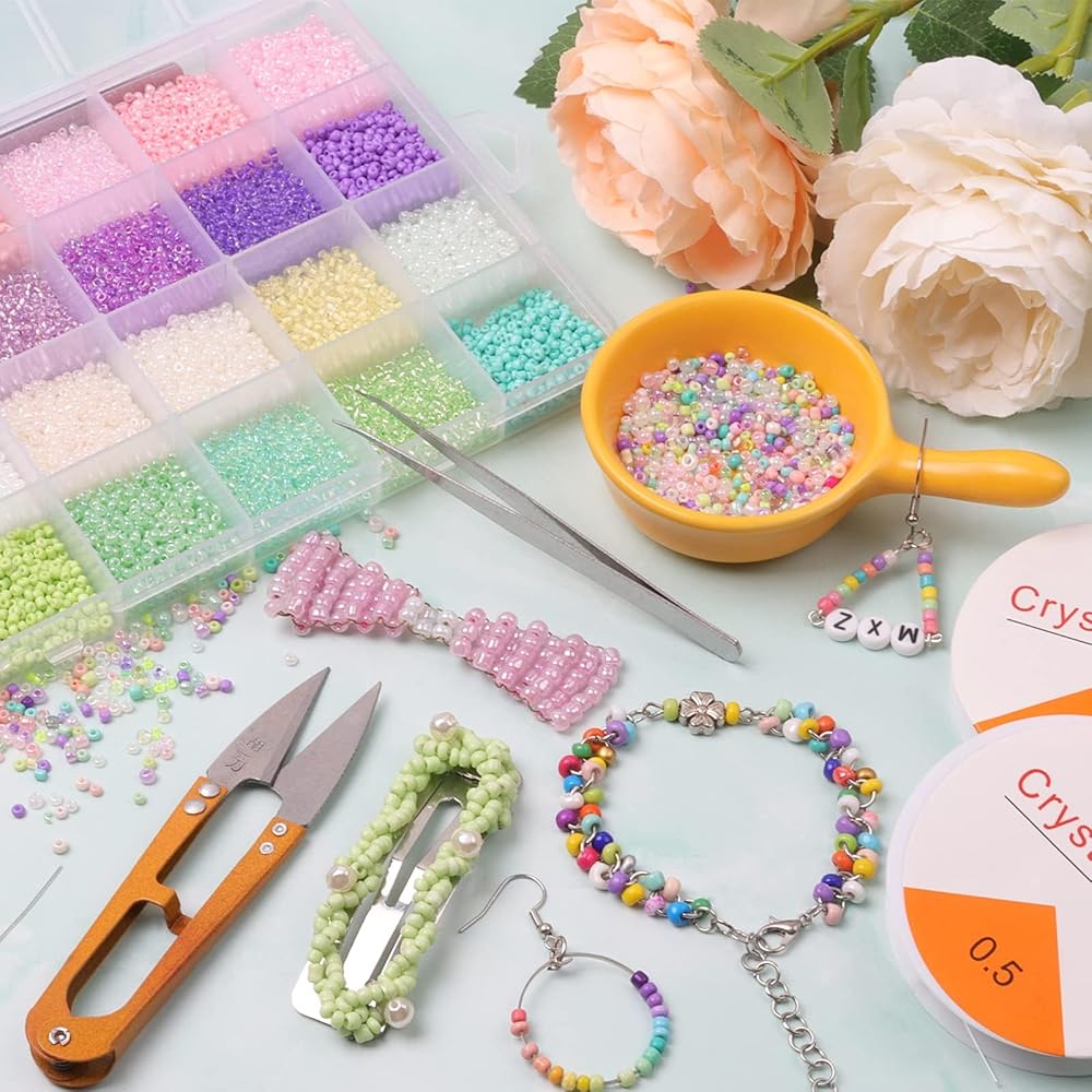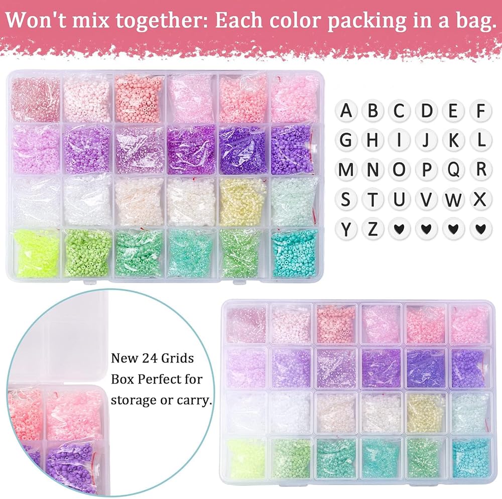 【خرز بذور عالي الجودة】يوجد حوالي 3360 قطعة 4 مم 6/0 خرز بذور ملون (140 قطعة لكل لون)، وهي مصنوعة من زجاج عالي الجودة وهو متين وقوي.