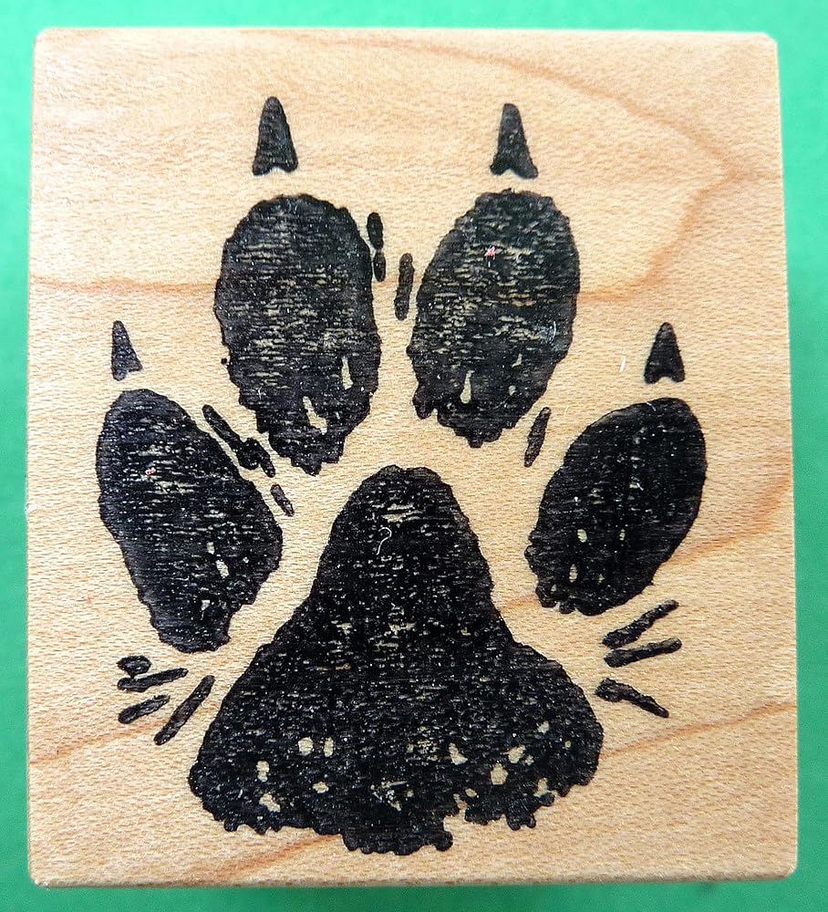 ختم مطاطي بطباعة مخالب الكلب، كبير، 1 بوصة × 1-3/8 بوصة، مثبت على الخشب