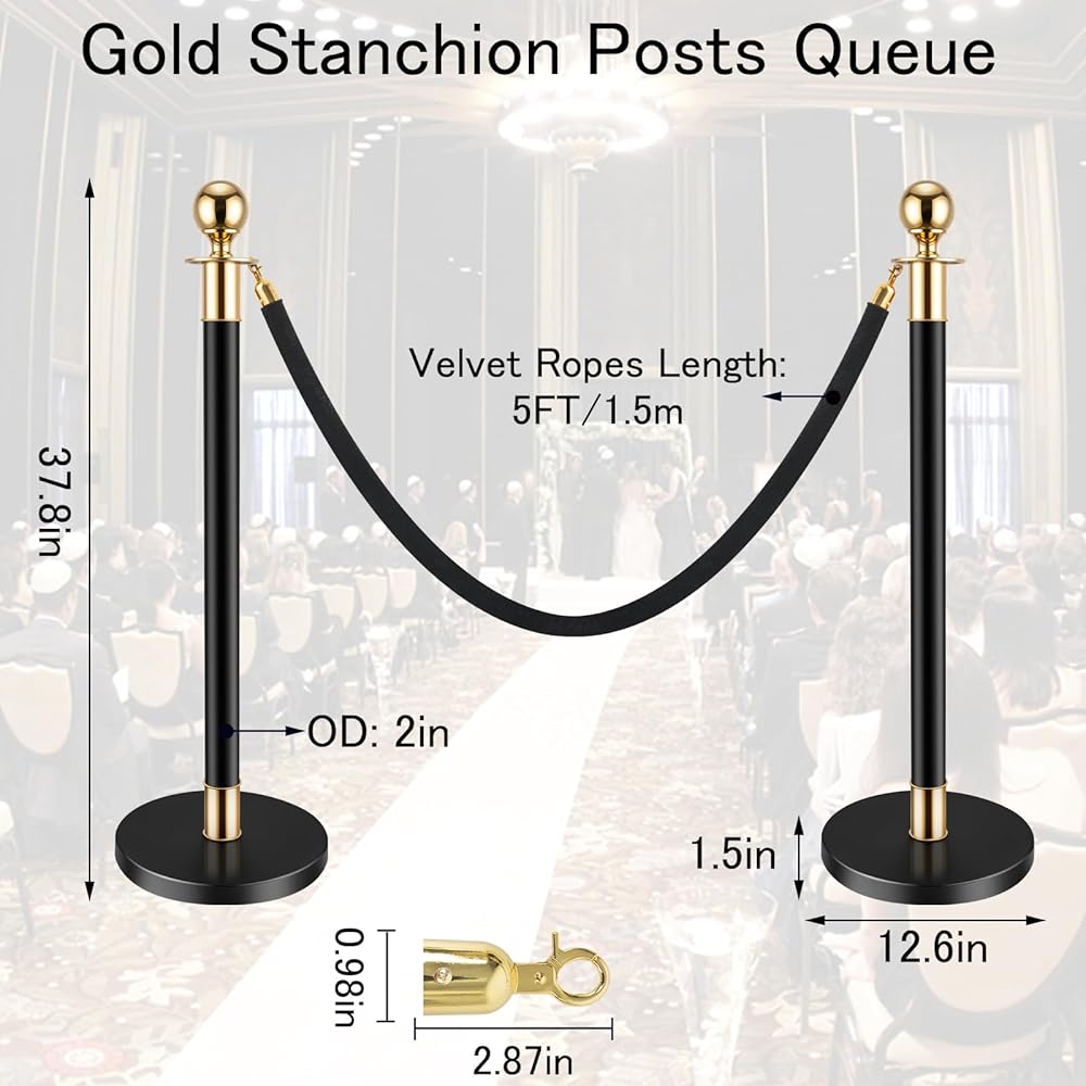 【Multifunctional Gold Pole Stanchion】- Velvet rope stanchion set are ideal for indoor and outside use. Gold stanchion is commonly used in grand openings, theaters, hotels, edding, party, museums, VIP lines, casinos, restaurants, concert venues, ceremony casinos, clubs, exhibition centers, festival occasions, ticket offices, trade shows, and so on. This by the front door to add a sense of occasion for parties and dinner parties!