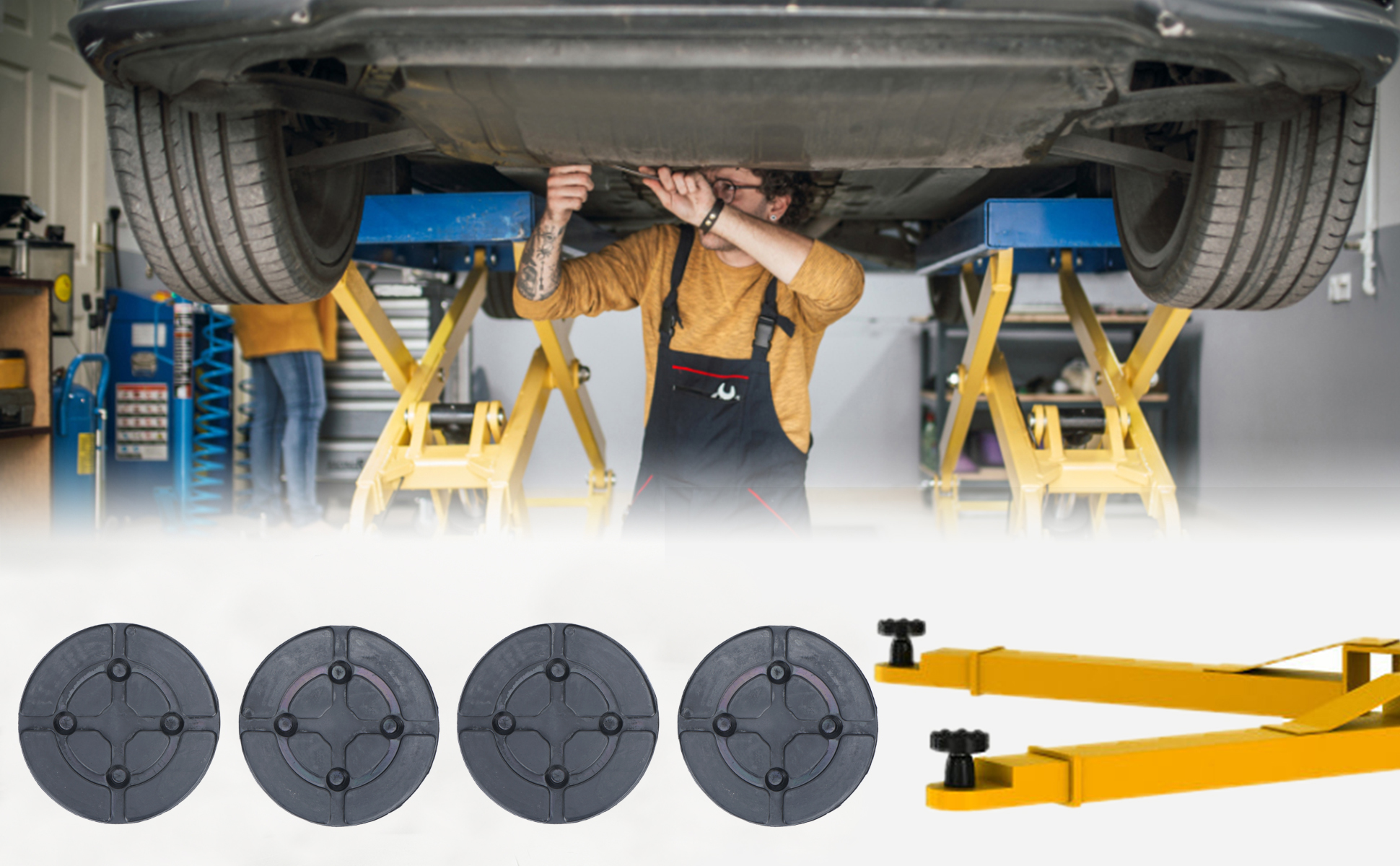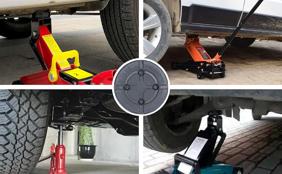 • 【وسادة ضغط مبطنة لدعم جاك】 وسادات رفع السيارة لها نمط دائري في الأعلى إلى نمط مخطط وتساعد على إطالة العمر. امنع قضبان الإطار من الانحناء عند استخدام الرافعة لرفع سيارتك. سطح مطاطي ناعم، لا تخدش أجزاء الهيكل المطلية أو المطلية.