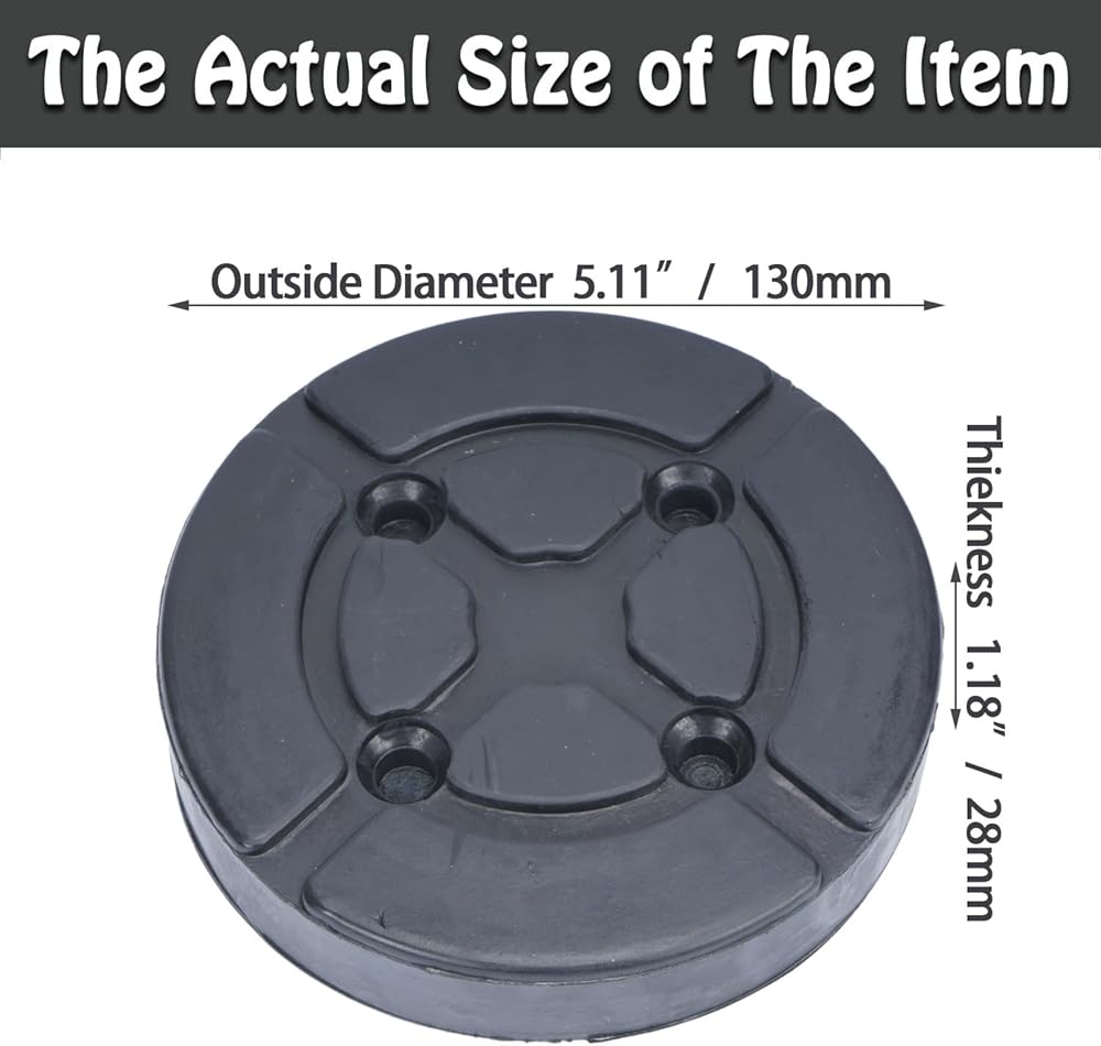 • 【أبعاد وسادة الرفع】حجم 4 وسادات رفع السيارة 125*20 مم، القطر: 130 مم/5.11 بوصة. السُمك: 28 مم/1.1 بوصة. بطانة جاك/قرص/قبعات: يُستخدم هذا المنتج لحماية هيكل السيارة السفلي من المعدن الذي يوجد في معظم المركبات. تتضمن المجموعة 4 قطع.