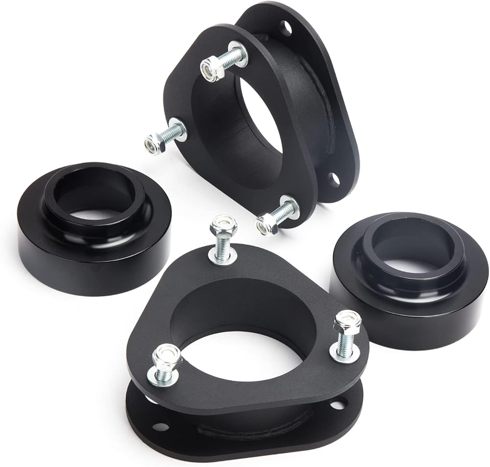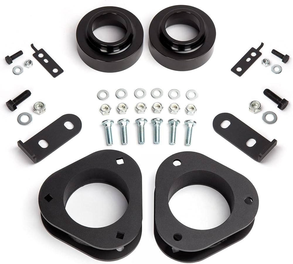 2x فواصل دعامة أمامية، 2x فواصل زنبركية خلفية، 2x ألواح حديدية على شكل حرف L، 2x ألواح حديدية صغيرة، 1x حزمة من ملحقات البراغي، 1x تعليمات التركيب