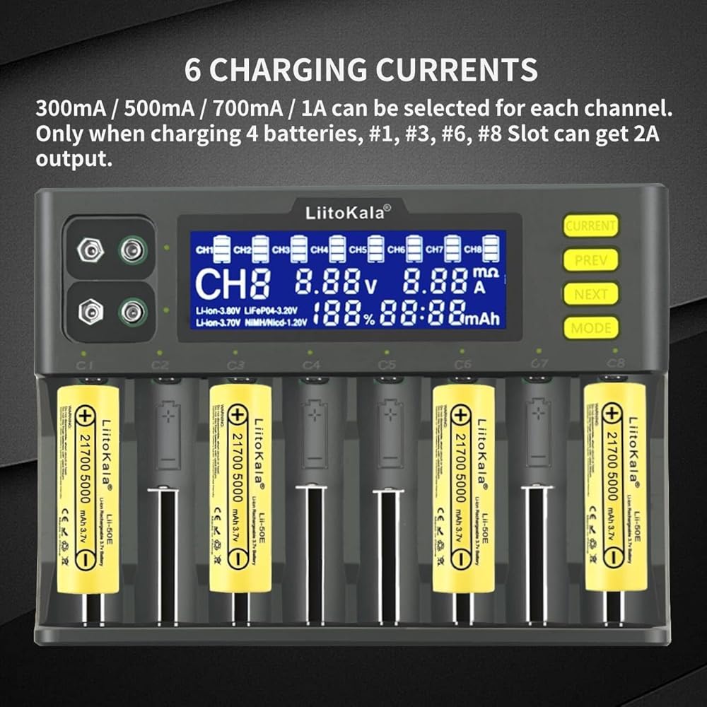 Compatible with Li-ion (4.20V / 4.35V) / IMR / INR / ICR / LiFePO4 (3.60V) and NiMH / Cd (1.2V) and 9V batteries.