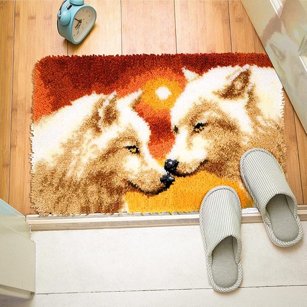 【Stress reduction】 This DIY latch hook kits allows the brain to focus on stitching and not on the worry, help you sit down to breathe ,regain the calm and keep away from anxiety in your life. When you begin to feel overwhelmed by life tasks, please try sitting down to finish this DIY Latch Hook Kit.