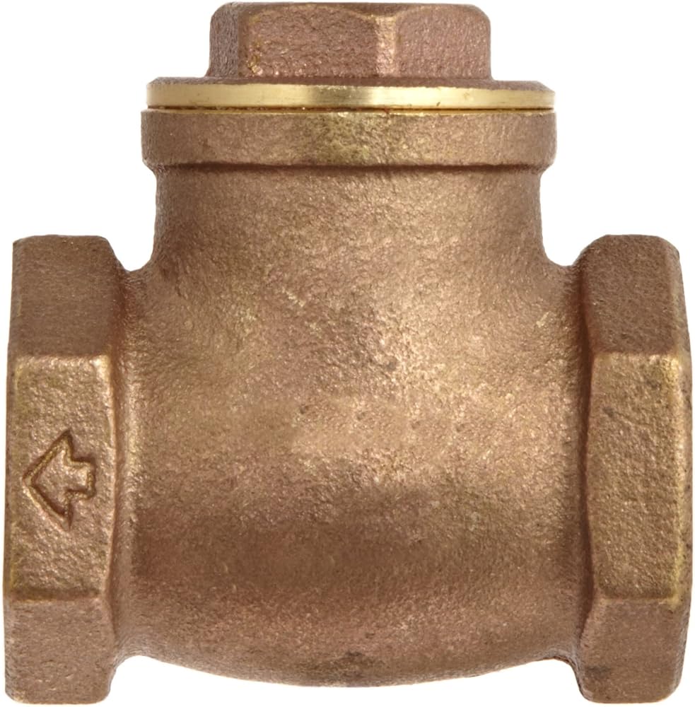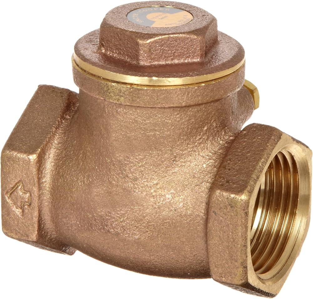 Horizontal swing check valve. A positive seating disc allows flow only in one direction and a screw-in cap provides easy access for periodic cleaning. Swing check valves are designed to prevent back flow in plumbing and liquid piping systems, while offering full flow performance with a minimum of turbulence or pressure loss. Made of brass. For horizontal or vertical use. Brass disc. Rated to 200 psi pressure WOG. Temperature range -20 to 150 degree F. 3" NPT female x 3" NPT female.