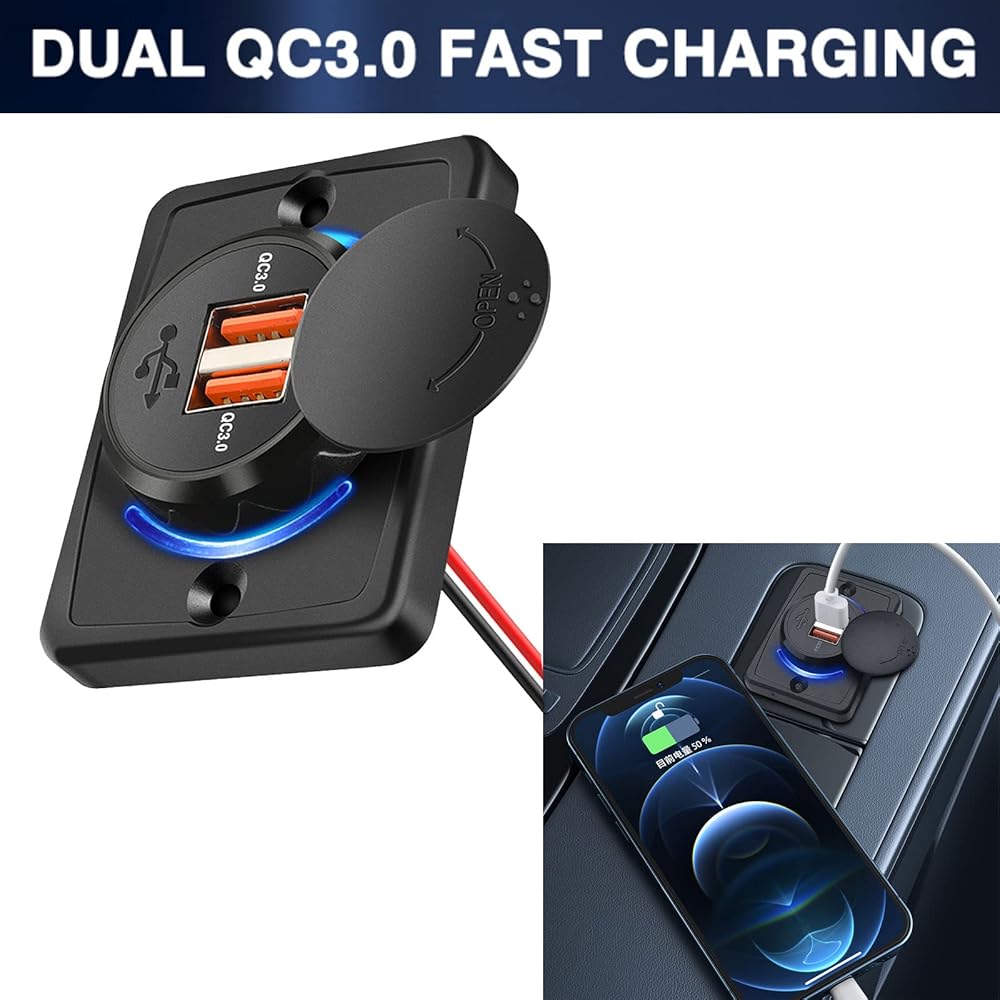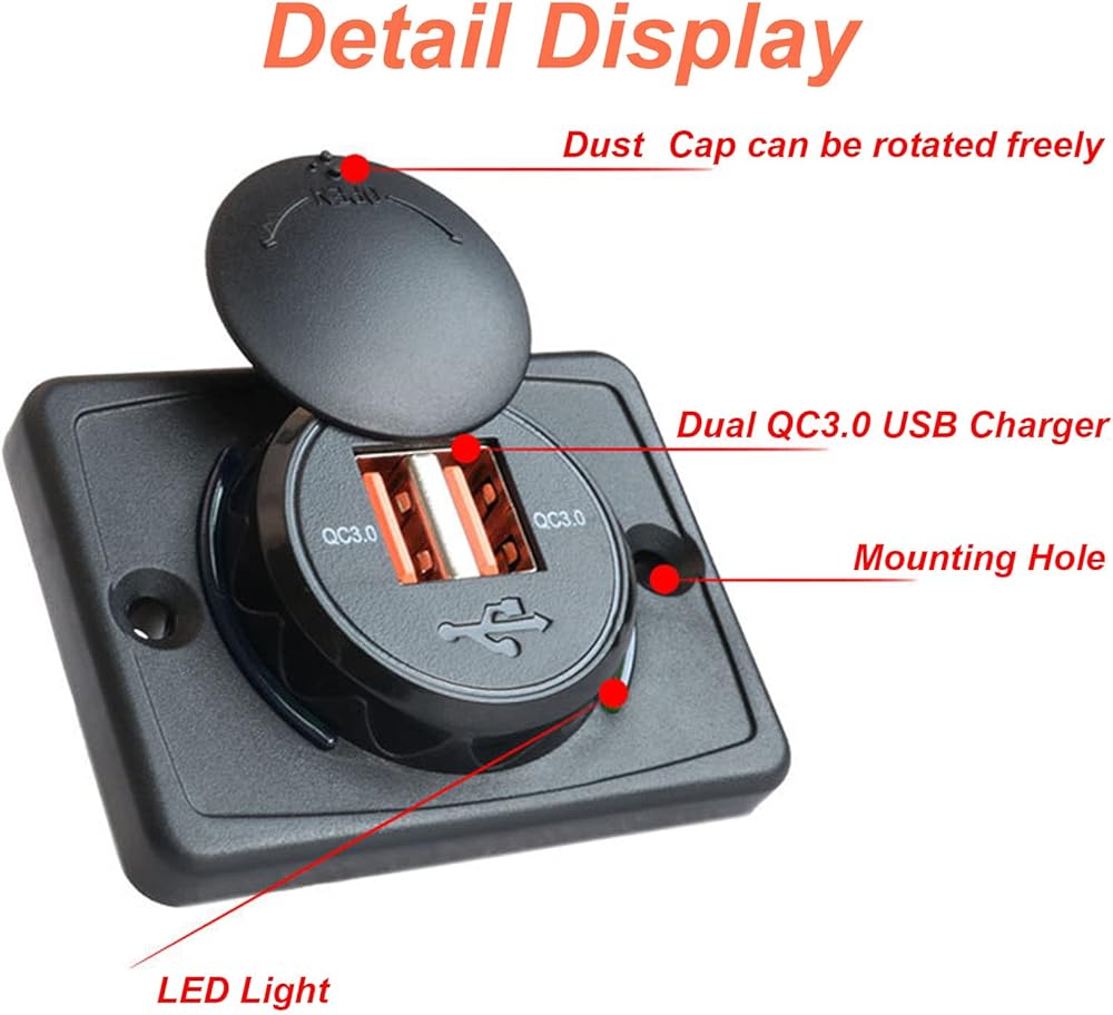 لوحة مخرج USB 12 فولت QC 3.0 مزدوج USB 36 وات مقبس شاحن سيارة سريع مخرج طاقة مع غطاء مخرج USB RV 12 فولت جدار جبل للحافلة RV قارب السيارات البحرية ATV شاحنة 12 فولت - 24 فولت (قطعة واحدة)