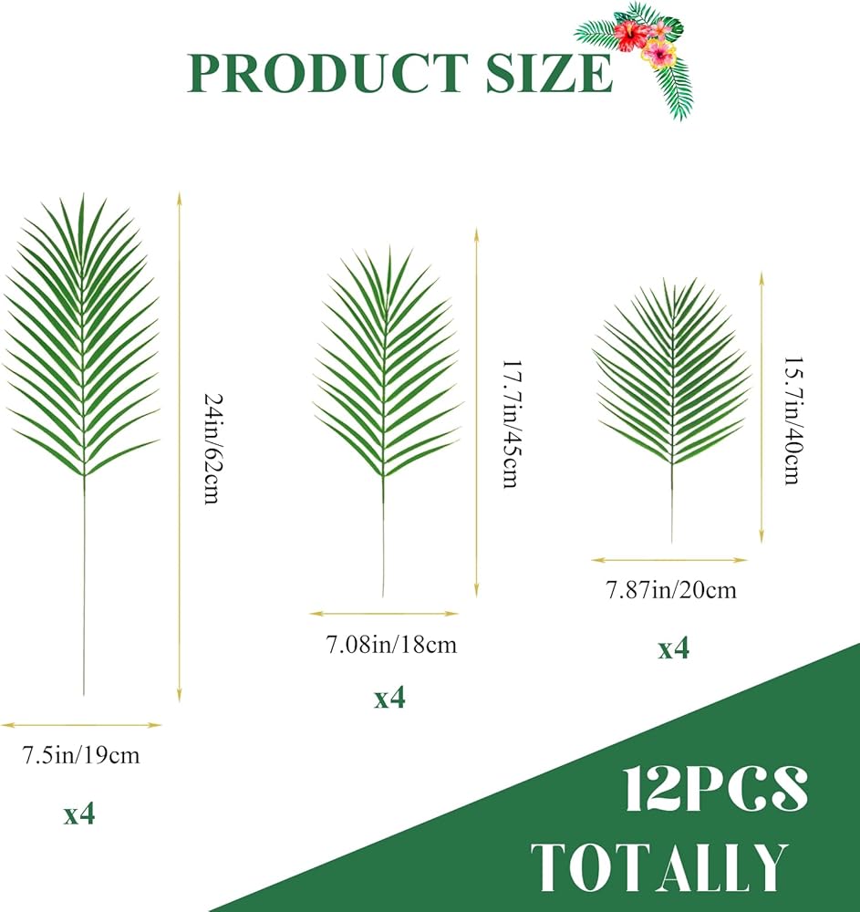 Package:You will get 12 pcs lifelike tropical artificial palm leaves in 3 different sizes in total,4 pcs for each size.Perfect for beach parties, jungle parties, zoos, Hawaiian Luau-themed parties, birthday parties and wedding ceremonies, themed wedding shower, Jungle Havana nights theme party and Halloween decorations