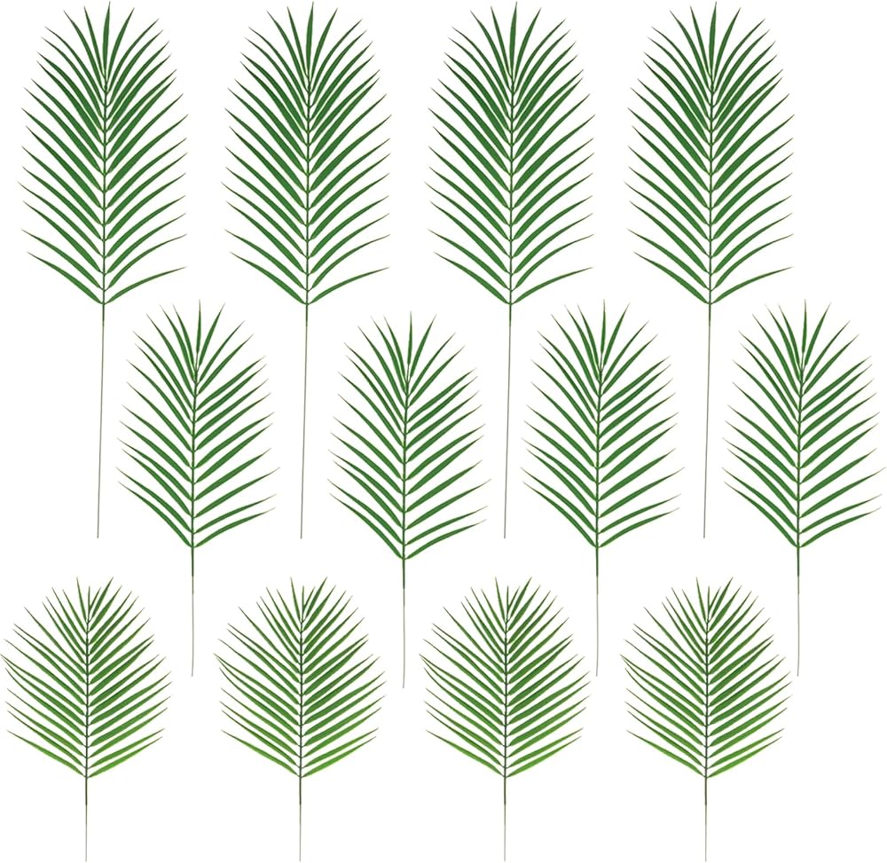 12 قطعة من أوراق النخيل الاصطناعية من Gloreyan، سعف النخيل الصناعية بأحجام متنوعة لمحاكاة النباتات الاستوائية وأوراق السفاري مع سيقان لحفلات هاواي لواو وحفلات الزفاف وأعياد الميلاد